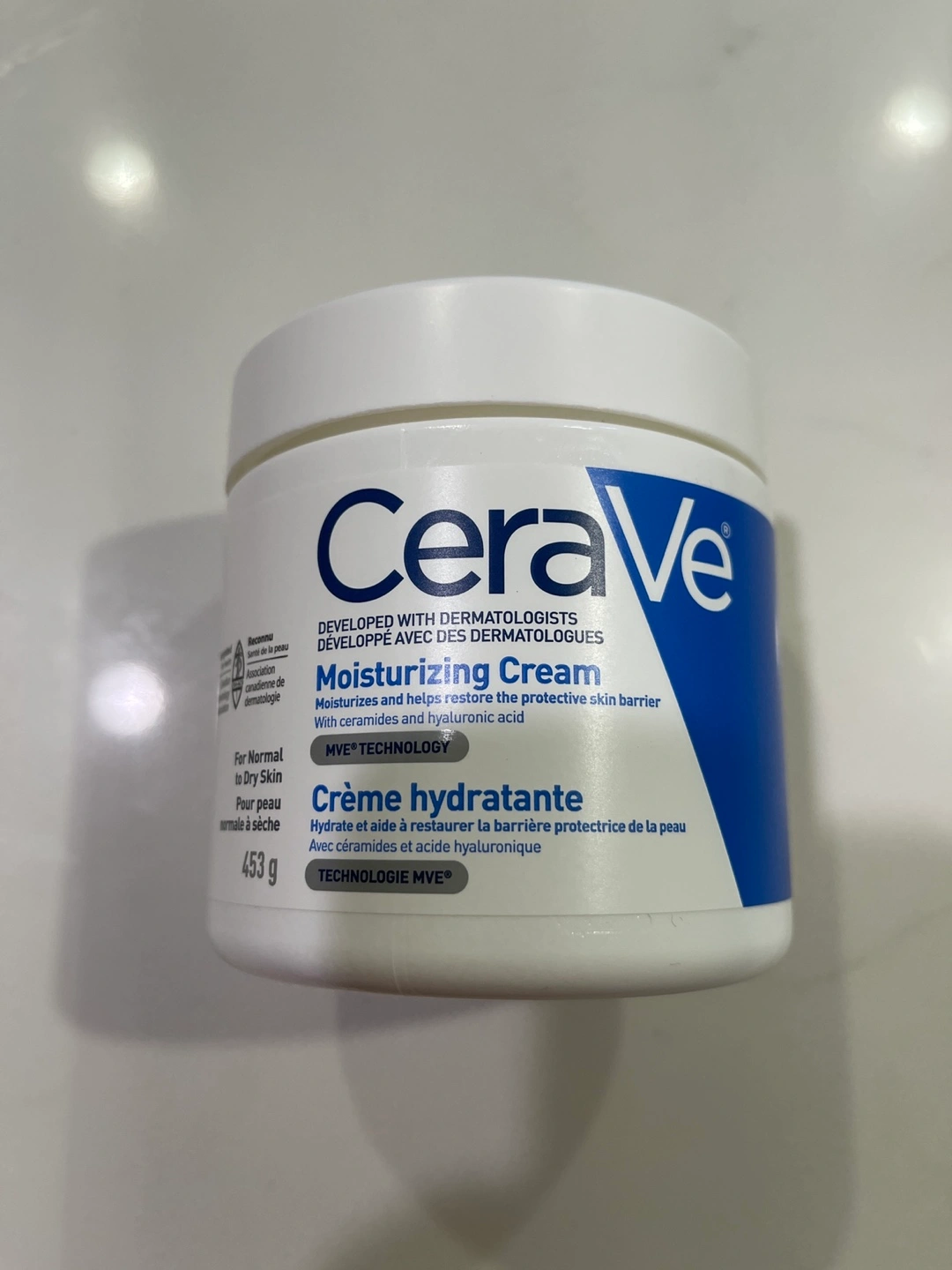 Cerave Moisturizing Cream, 453g. For normal to dry skin. Moisturizes and helps restore the protective skin barrier. With ceramides and hyaluronic acid.