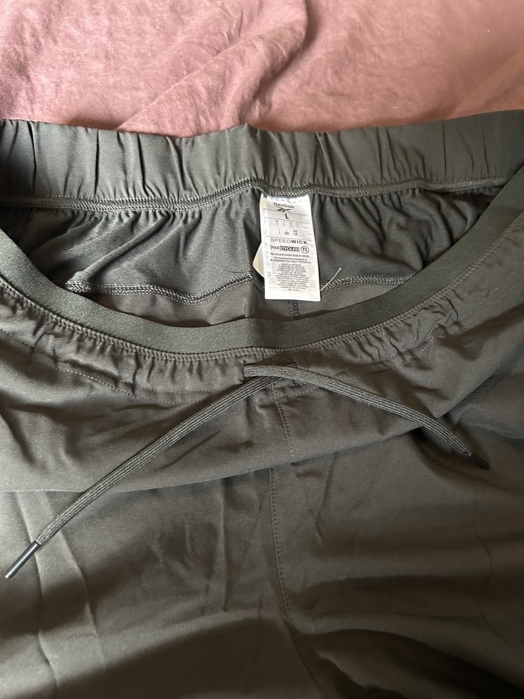 Men's Reebok Speedwick running shorts. Size large. Dark grey colour. Drawstring waist. Excellent for workouts. New with tags.
