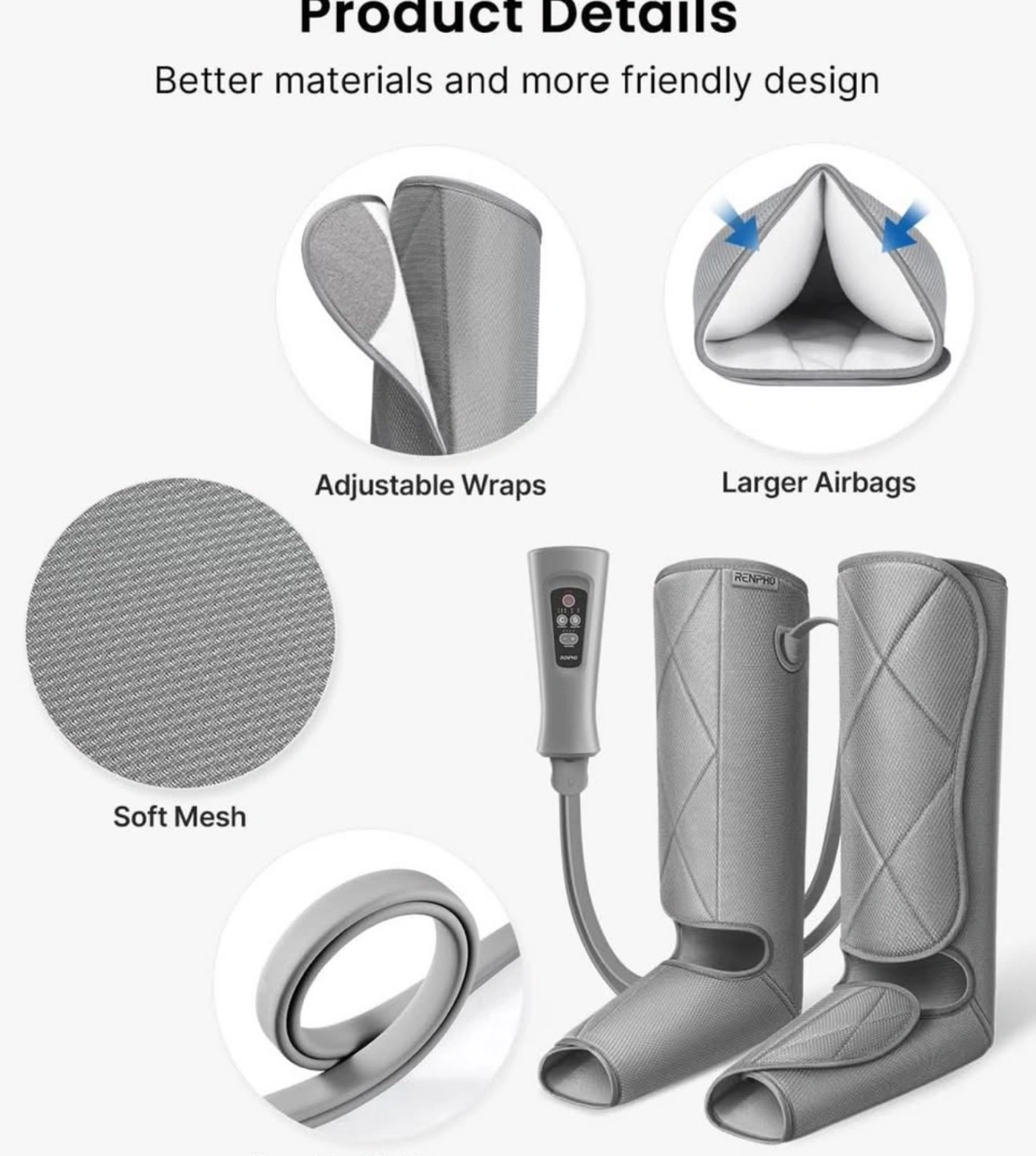 BNOB RENPHO Leg Massager for Circulation and Pain Relief, Calf Compression Massager Effective for Fathers Mothers Relaxation Muscles and Reduce Swelling-Grey