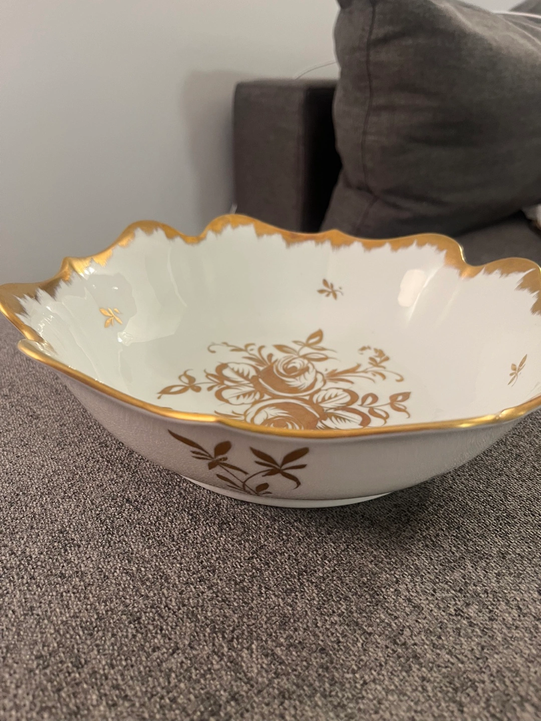 Gold-trimmed bowl, hand-painted floral design