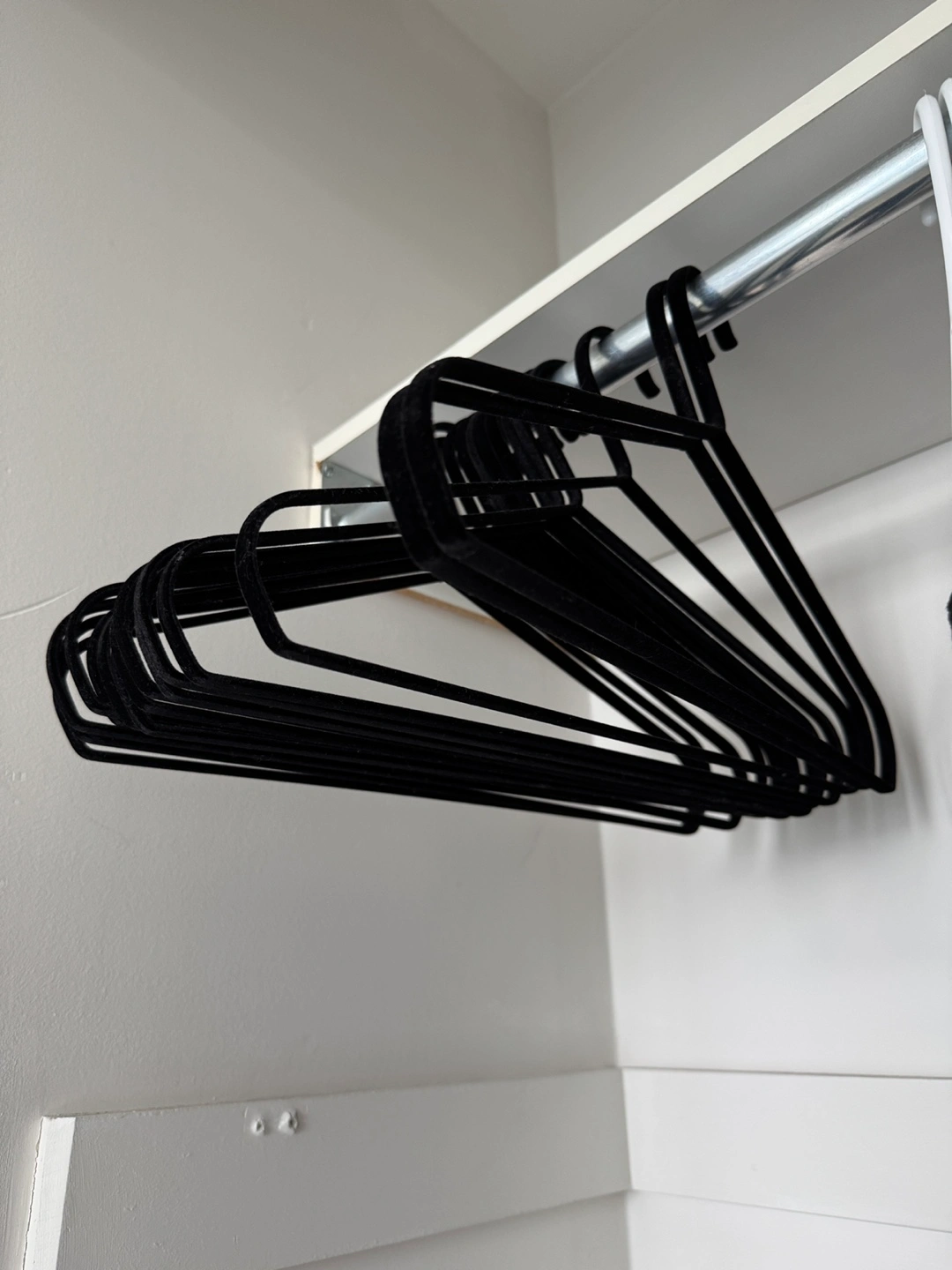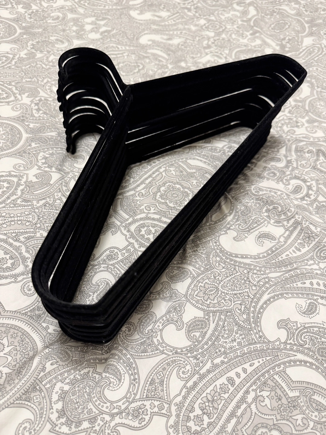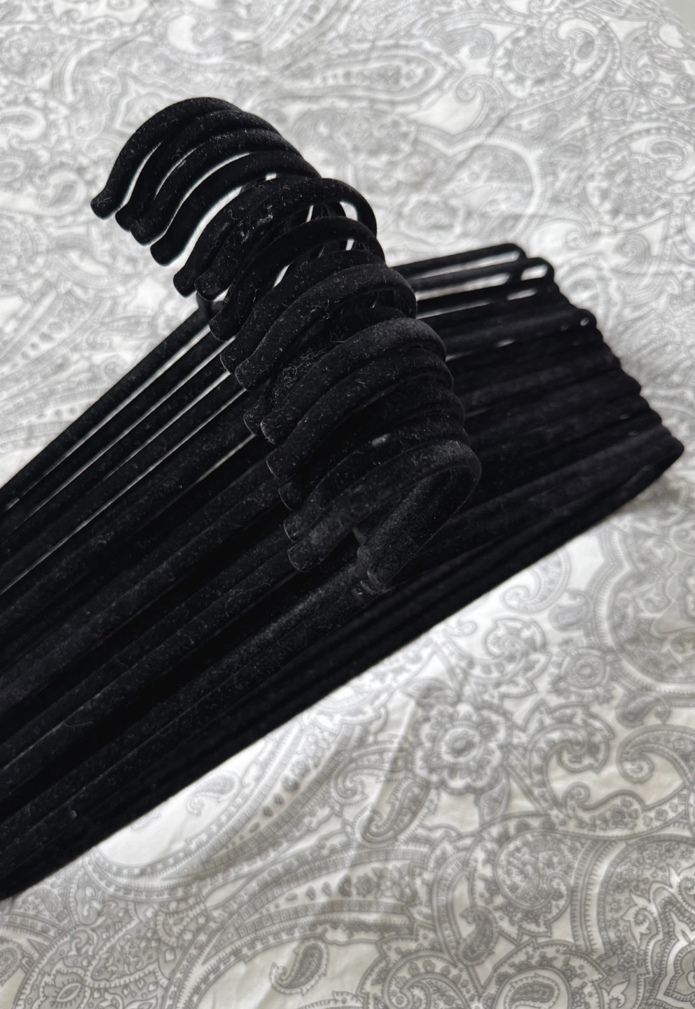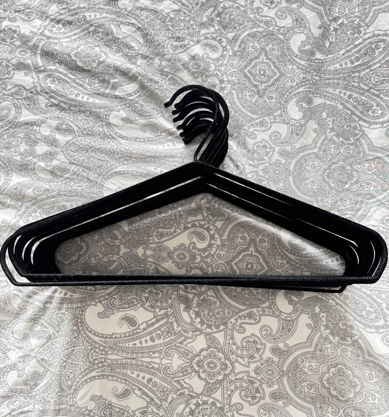 MOVING SALE 14 Black Thick Velvet Hangers Not your typical thin velvet hangers; width is 0.27” thick and great for hanging both lighter and heavier clothing and jackets Stops clothes from slipping In excellent, clean condition Pick-up near Sherbourne and Wellesley See other listings for more items for sale