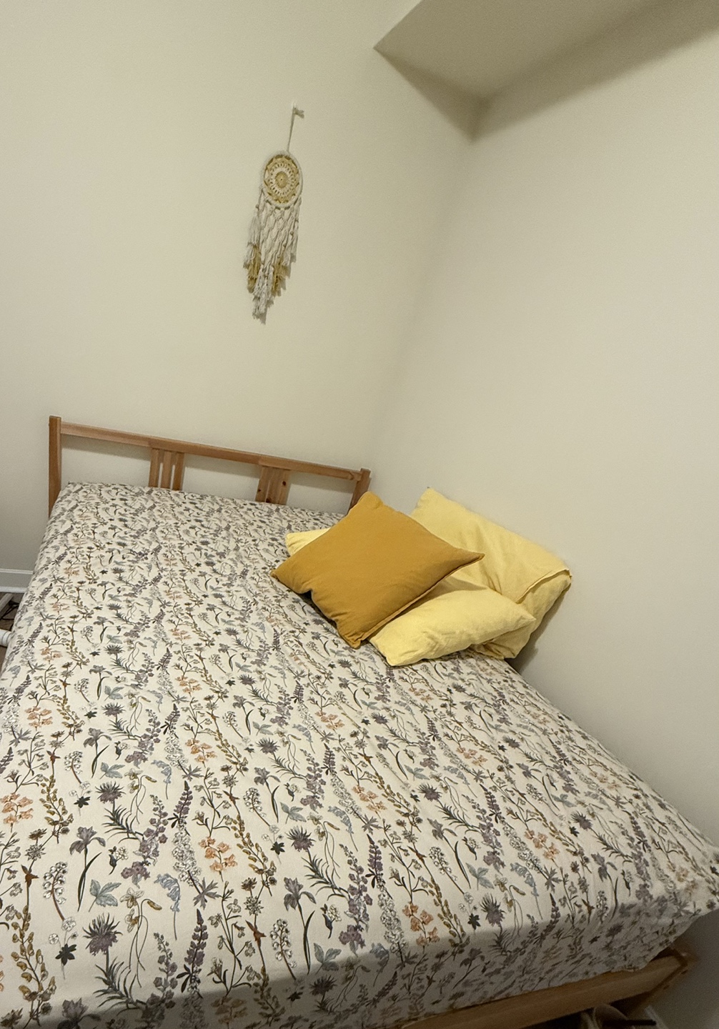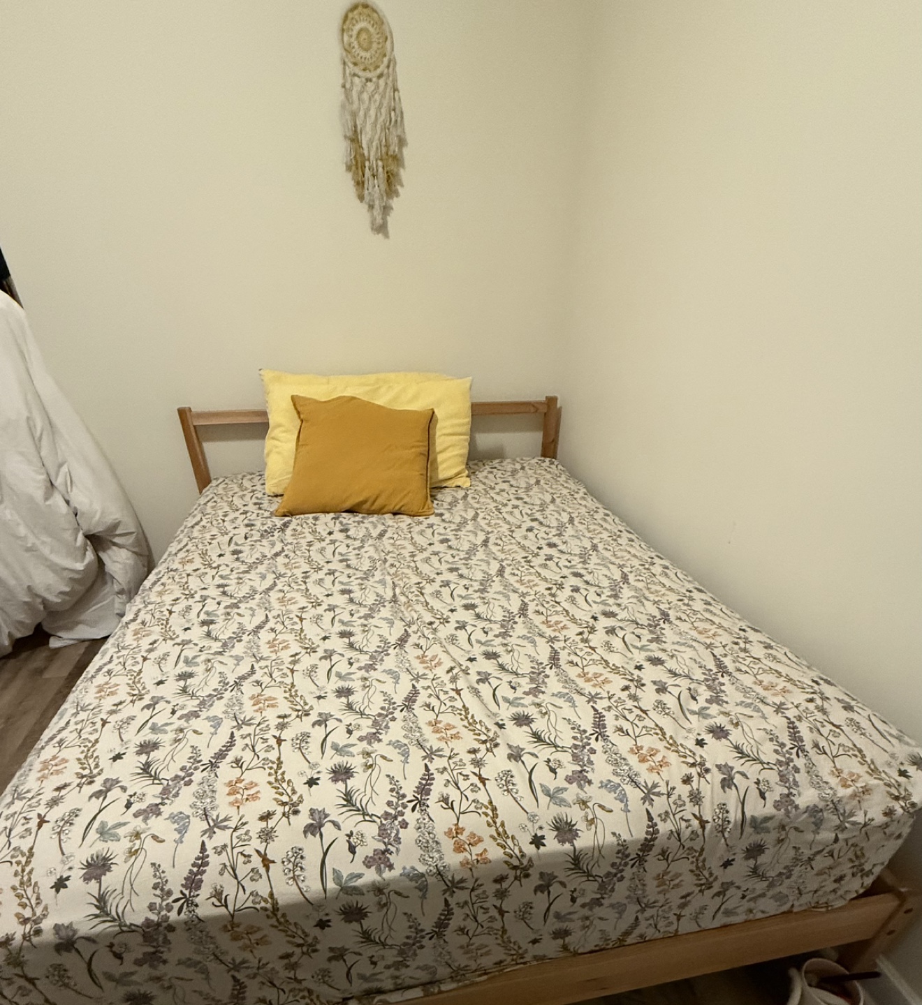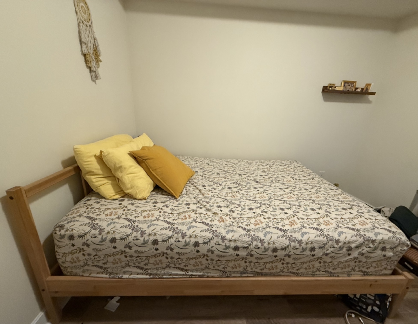 Wooden queen bed frame. Simple design, light wood colour. Minimalist style. Includes frame comes with Matters, Duvet and Two pillows