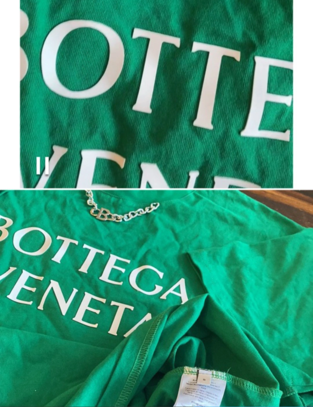 Green crew neck t-shirt. Bottega Veneta logo printed on the front. Short sleeves. Size L