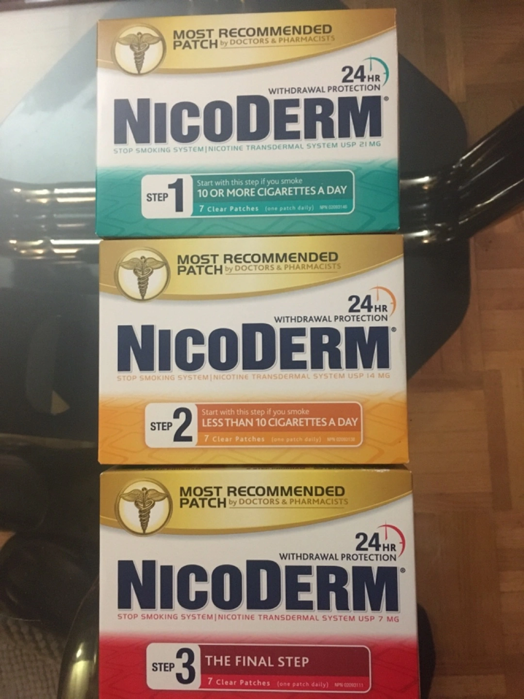 No more price cut .Price is for each. Are you trying to quit smoking now or soon? 7 boxes of NicoDerm quit smoking patches. Each box contains seven patches. Step 1 (21mg), Step 2 (14mg), and Step 3 (7mg). 24-hour withdrawal protection. BEST BEFORE MAY 1st but you can use past date. Retails for $65 each on Amazon