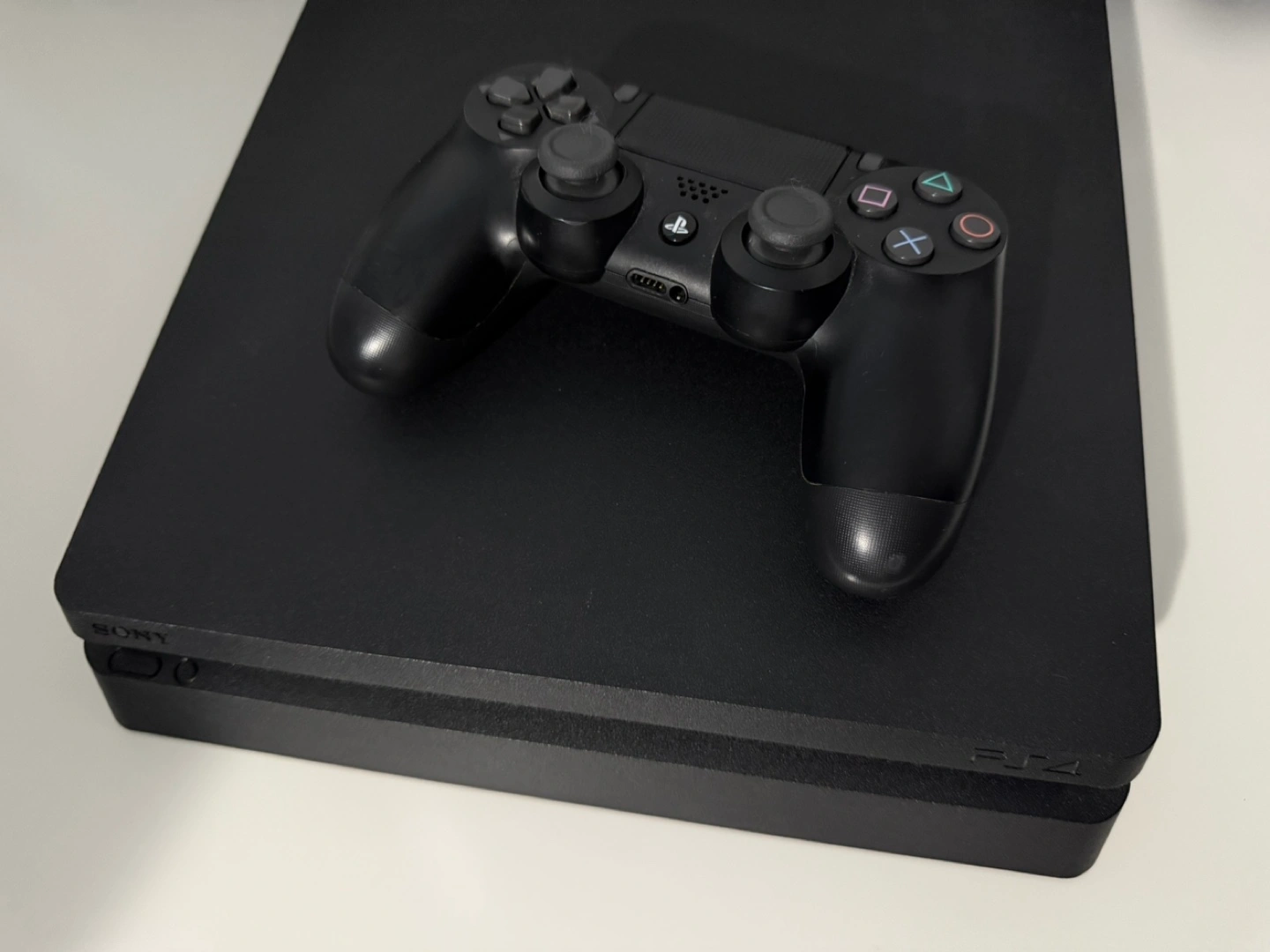 Sony PlayStation 4 Slim console. Includes one black DualShock 4 wireless controller. Great for gaming. With HDMI cable, Power Cable and Micro USB Cable, works perfectly 1TB Storage.