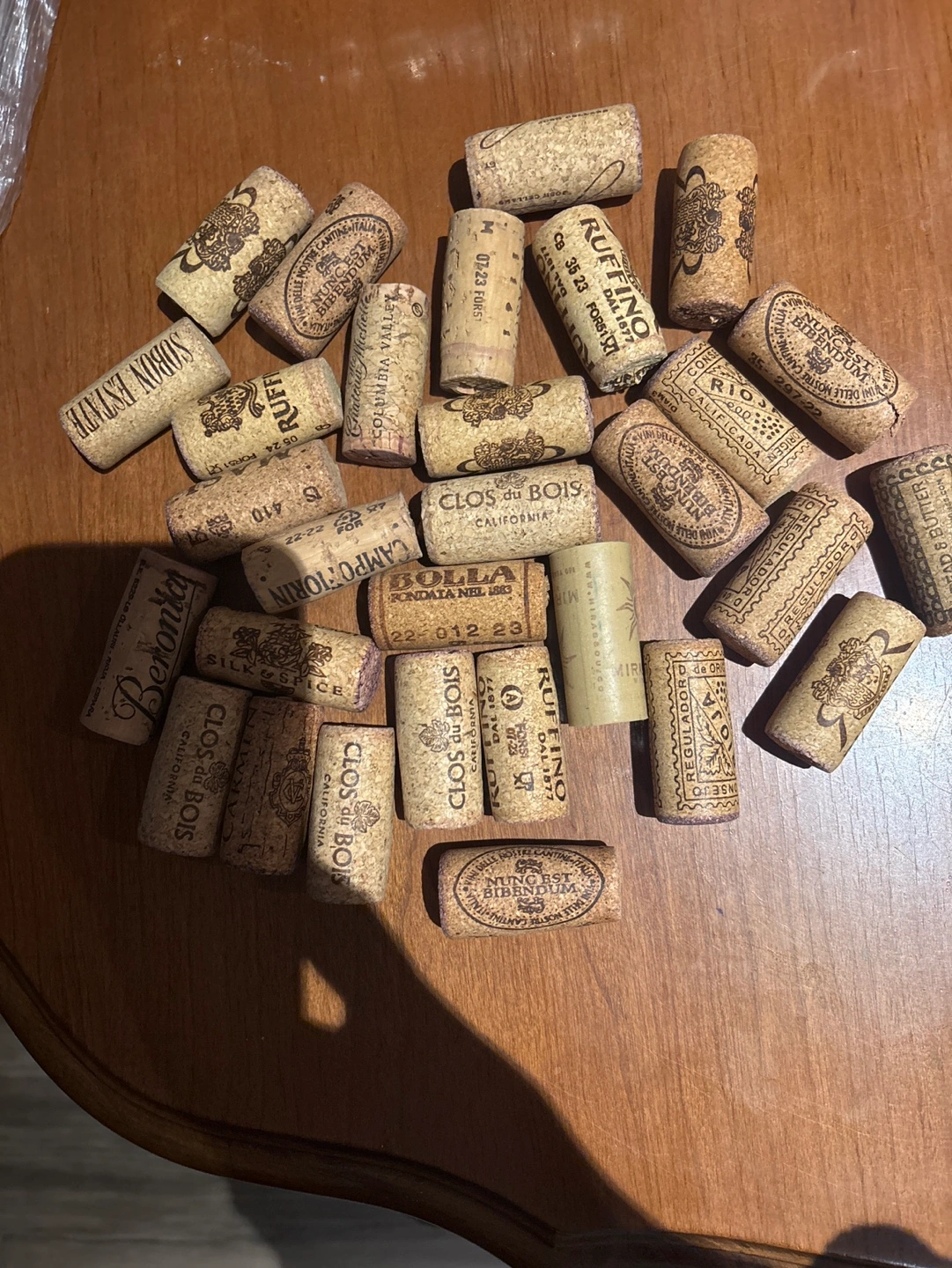 Assortment of used wine corks. Various brands and wineries represented. Ideal for crafting or décor projects.