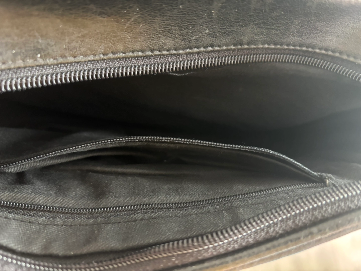 -Features 3 zippered compartments and two interior pocket.