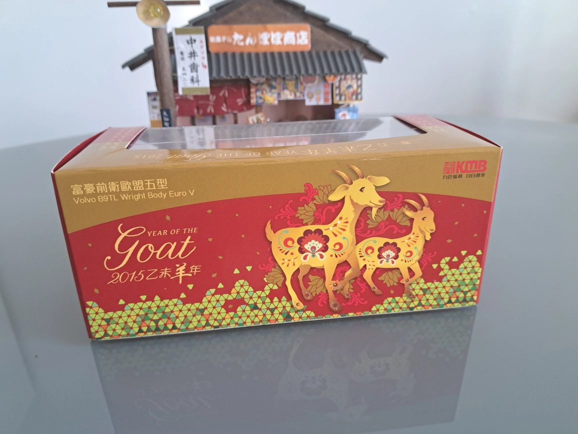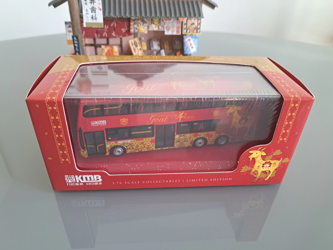 Limited edition 1:76 scale collectible model. Features a red double-decker bus with Year of the Goat 2015 design. Comes in a display case and box. New, never displayed.