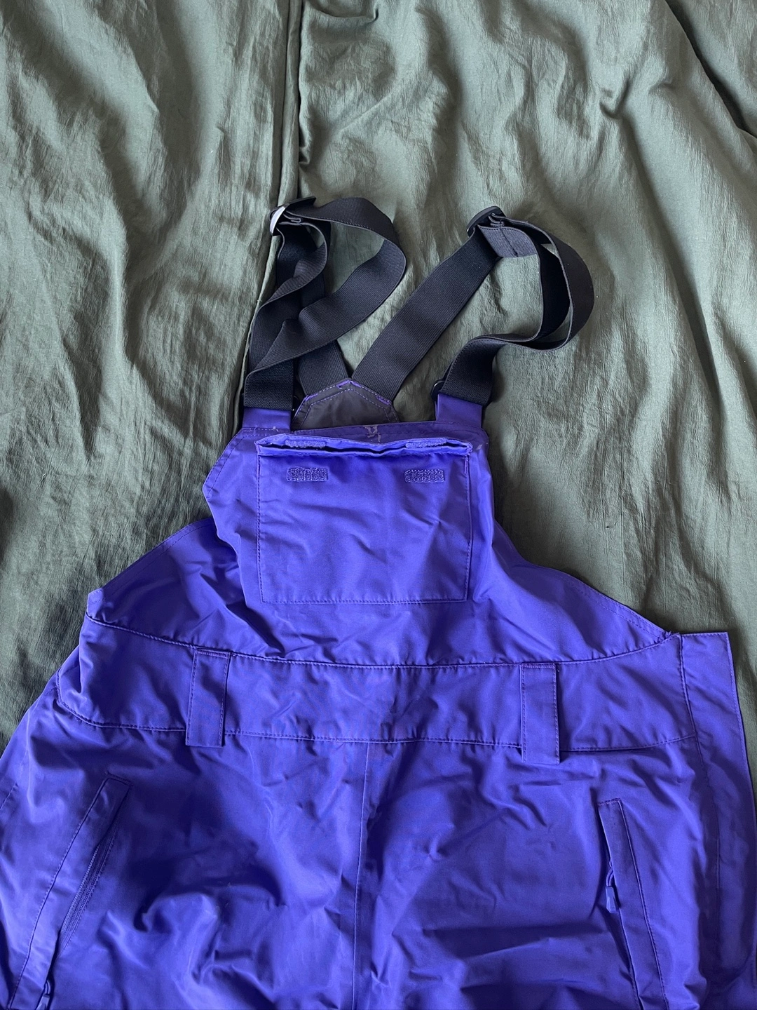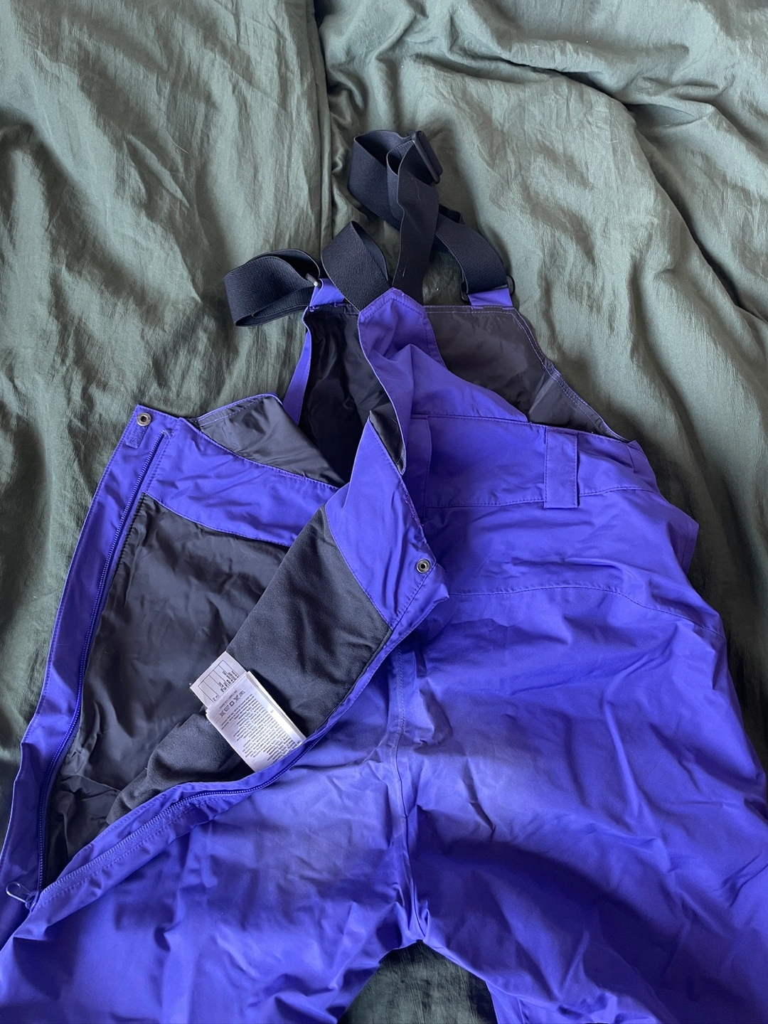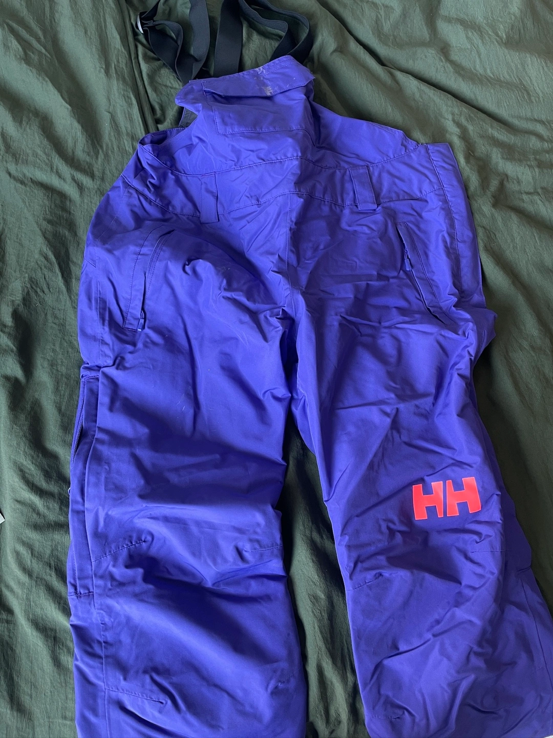 Purple snow pants with adjustable suspenders. It has multiple pockets and is insulated so it’s super warm. Worn a few times so the butt is a bit faded 🙈 but otherwise it’s in amazing condition.