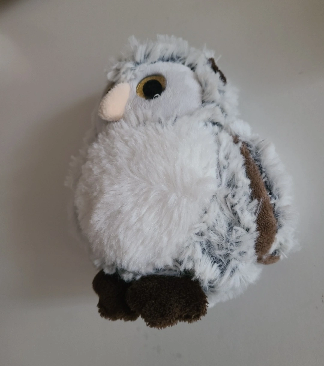 #freecycle Small plush owl toy. Grey and white fur. Big eyes. Brown feet. Soft and cuddly. Feel free to look at my other listings :) Pick up at Keele and Sheppard / King station