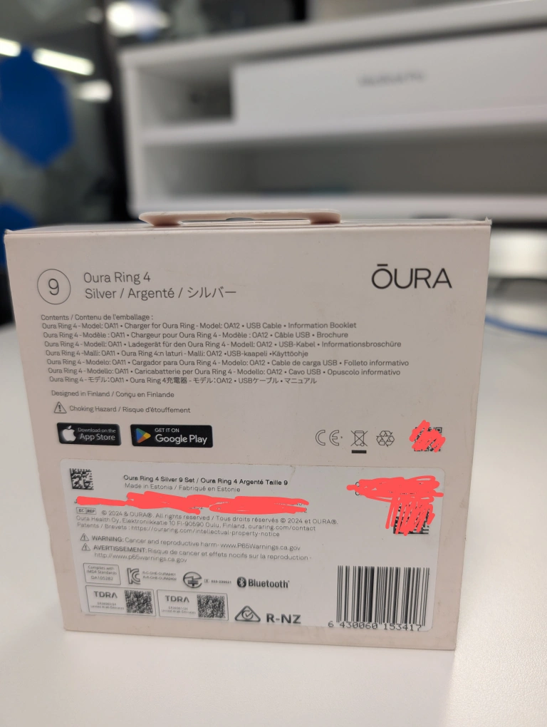 Brand new, unopened Oura Ring Gen 4 - Size 9 - Silver colour. Sealed in original packaging.