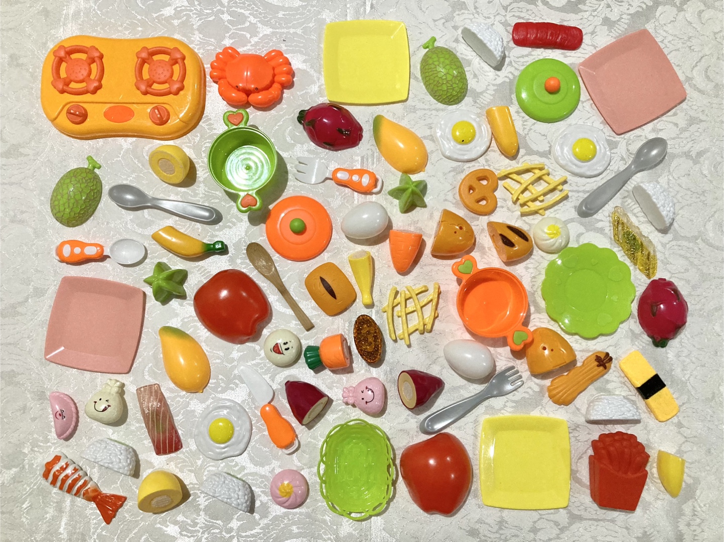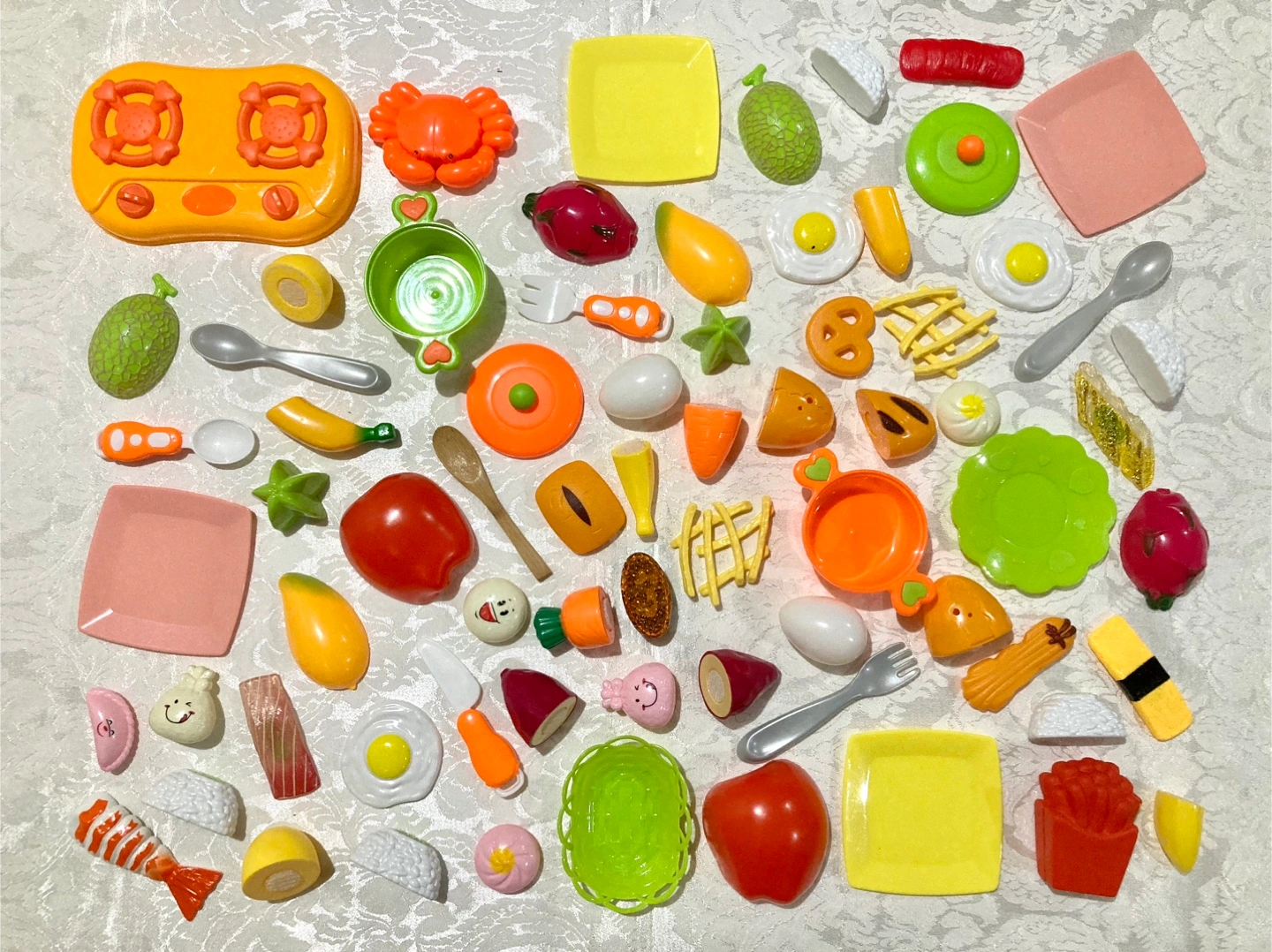 Lot has assorted items (food, desserts, plates, utensils etc)