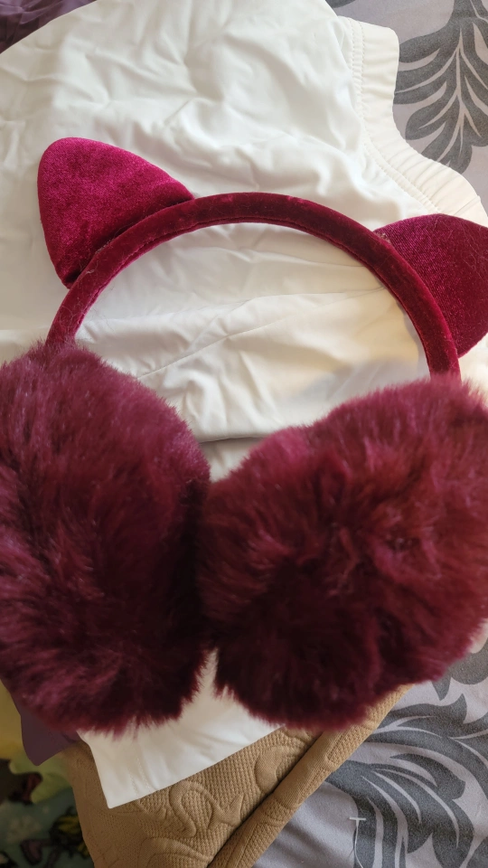 Burgundy Cat Ear Winter Earmuffs #freecycle