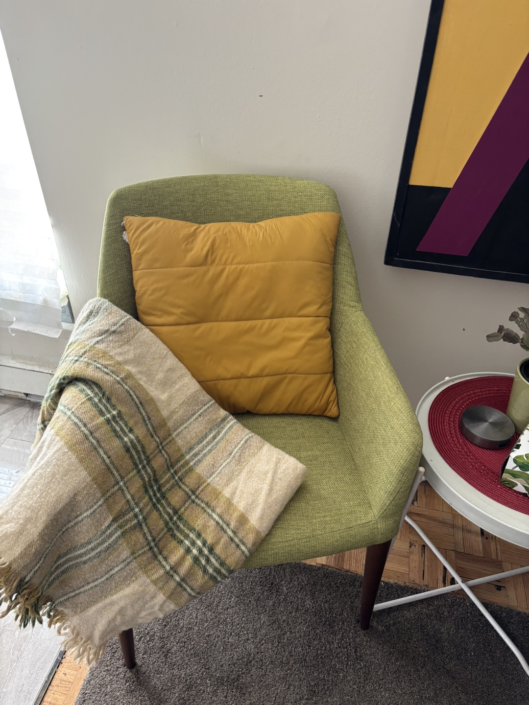 Lime Green Armchair with Wooden Legs