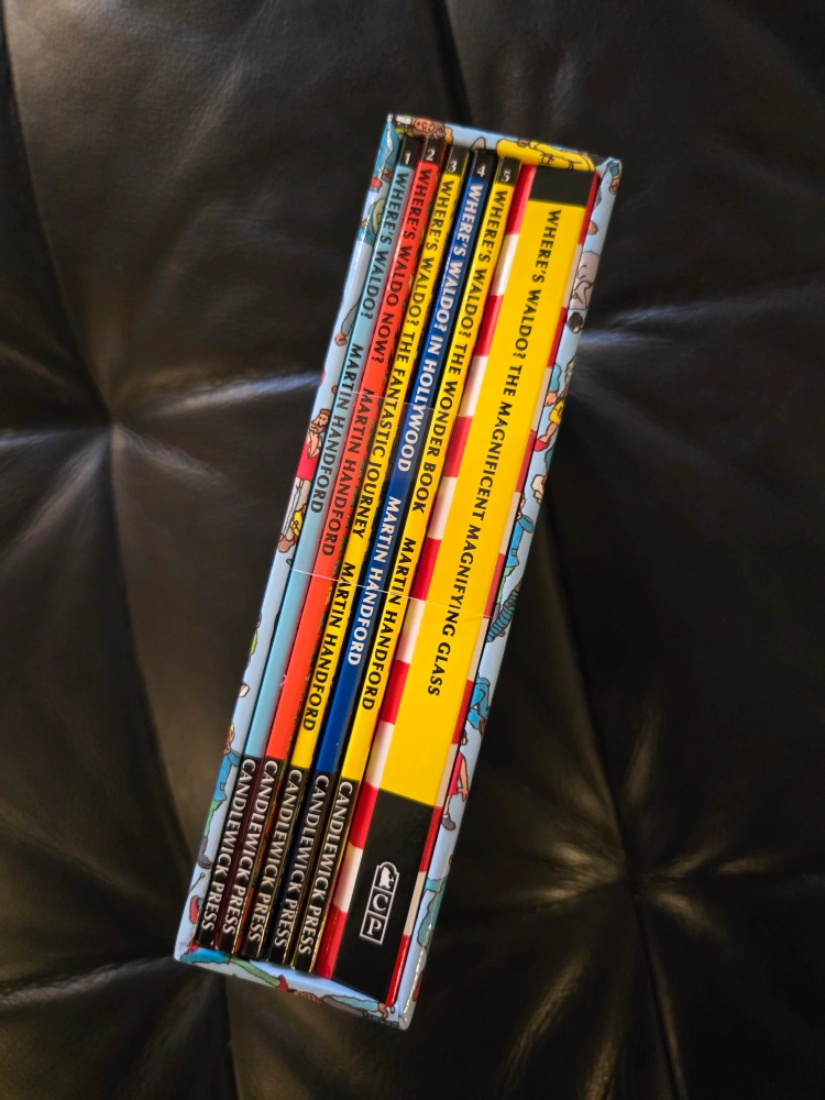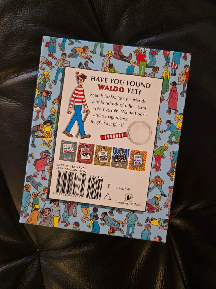Mini book box set. Includes five mini Where's Waldo books and a magnifying glass. Brand new.