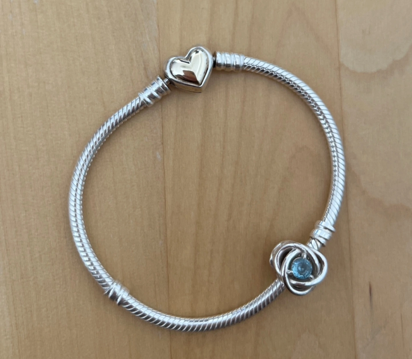 March Sea Aqua Blue Eternity Circle Charm (March Birthstone)