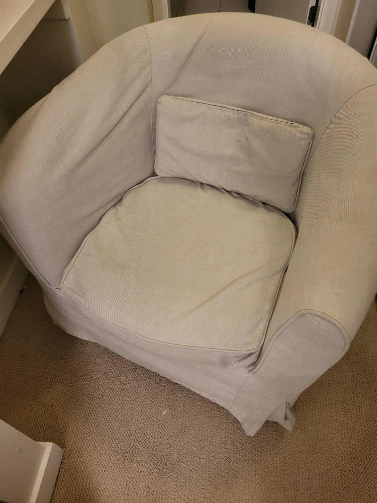 Buy & SellComfortable Armchair with CushionComfortable Armchair with CushionFreeRelaxing armchair, off-white fabric. Includes a rust-coloured cushion. Good condition. Perfect for a cozy reading nook.WHERE TO MEETBurquitlamView MapSELLERPaulina BainsBurquitlam252 reviews2 chats·0 favorites·57 views