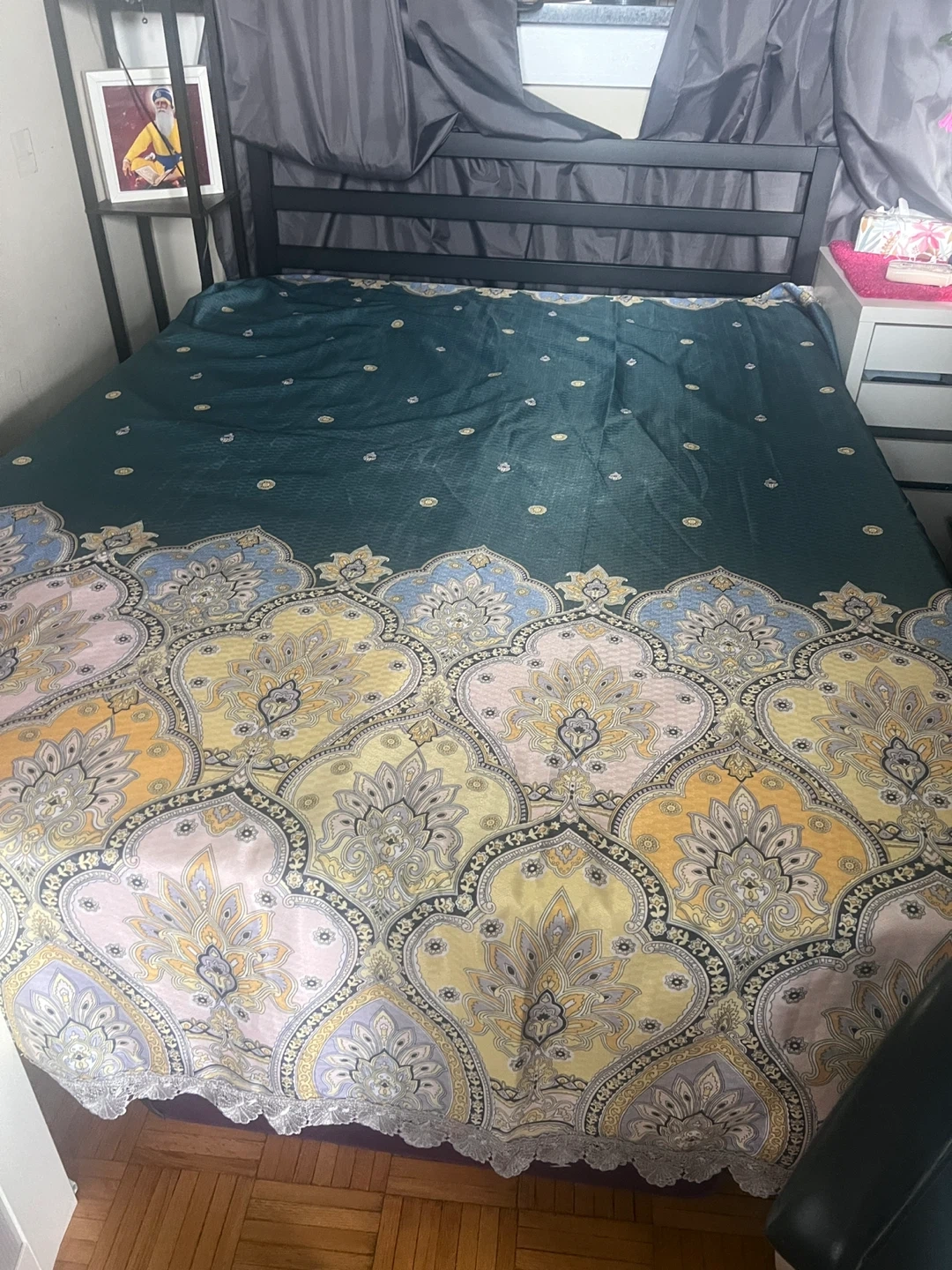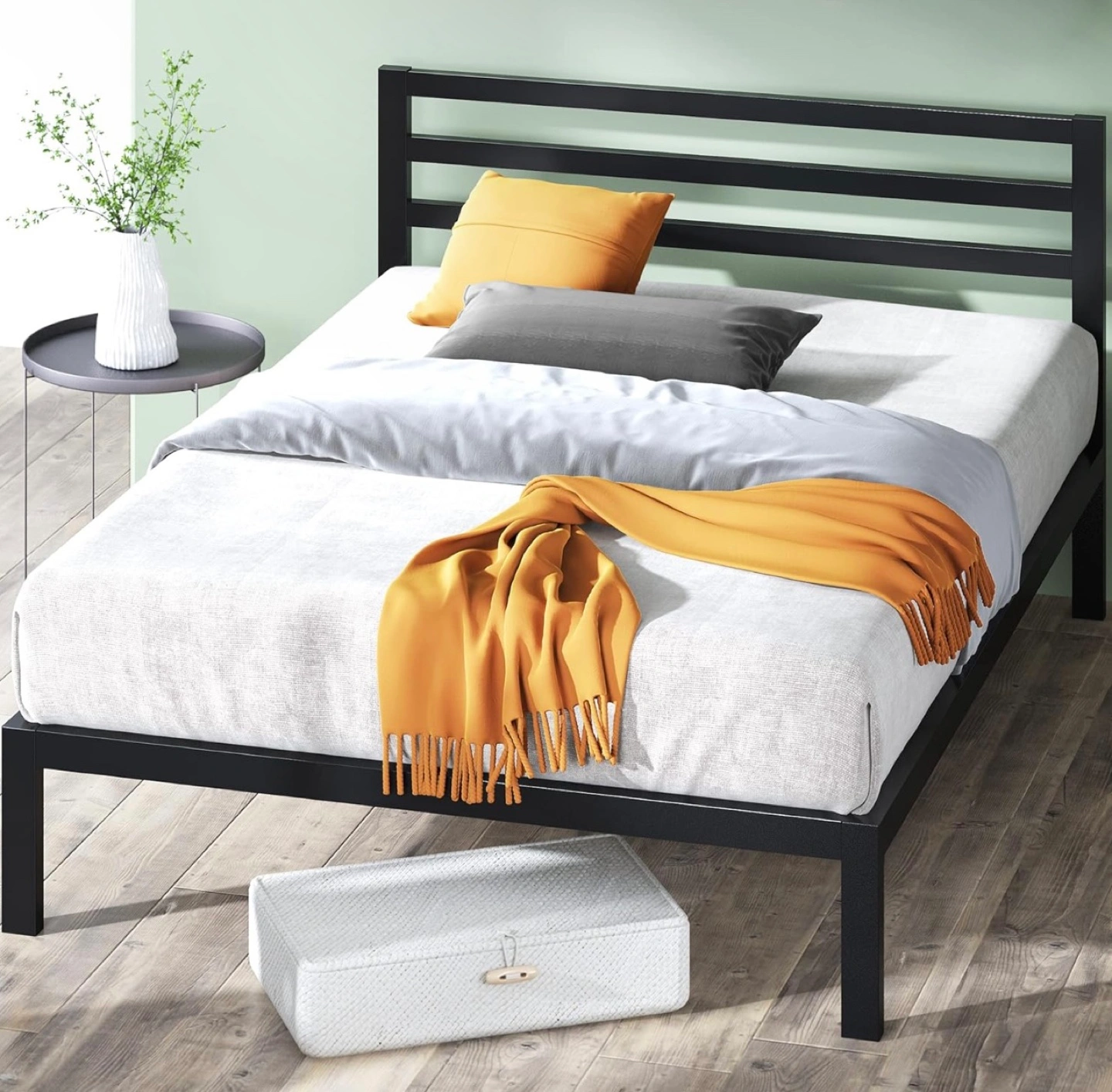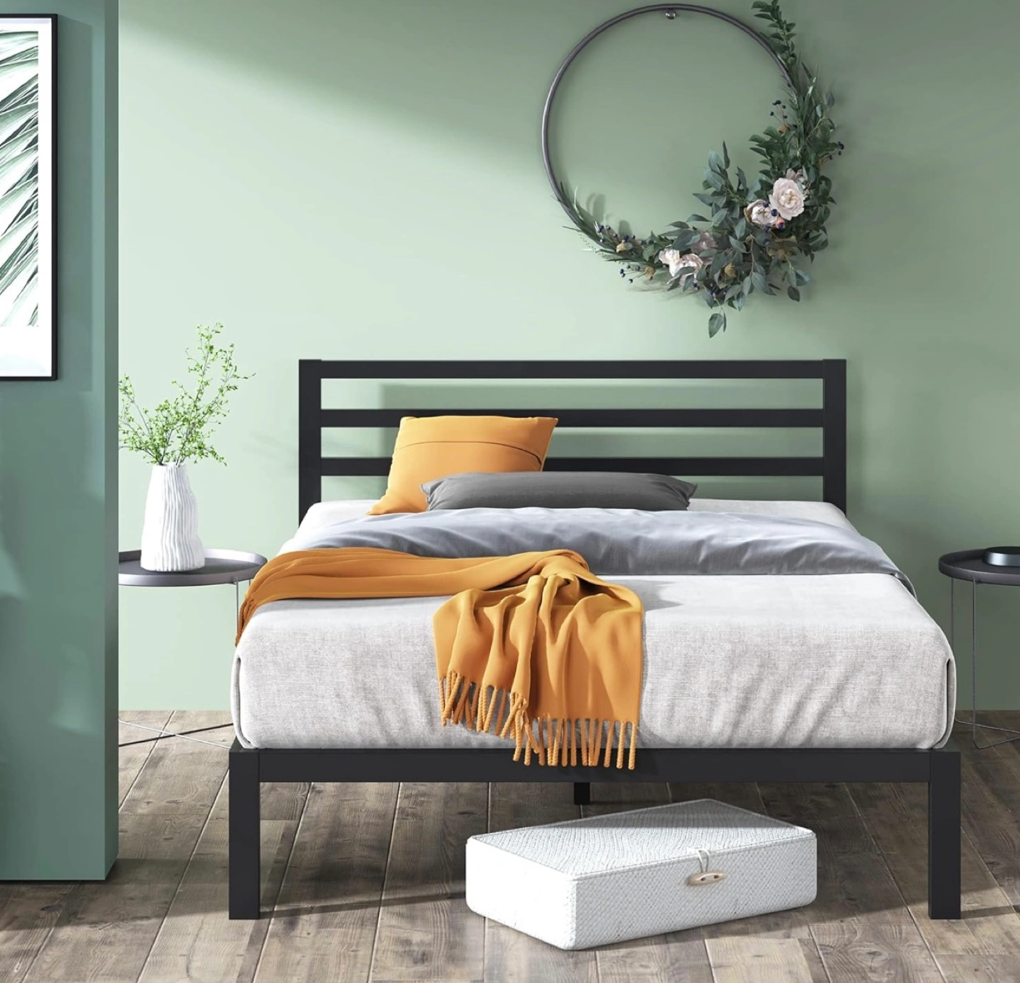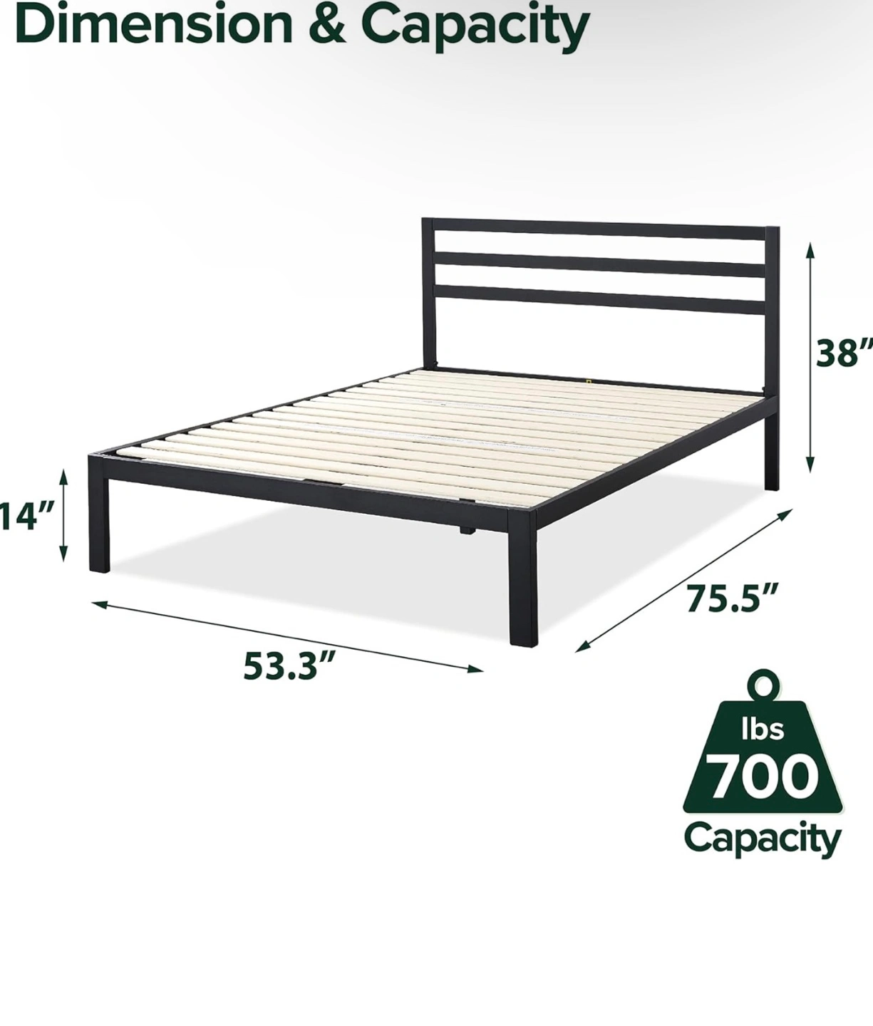 747Sturdy metal bed frame. Double size. Sleek, minimalist design. Black finish. Includes headboard and slats. 700 lb weight capacity. Can bundle up with mattress for $350 all together