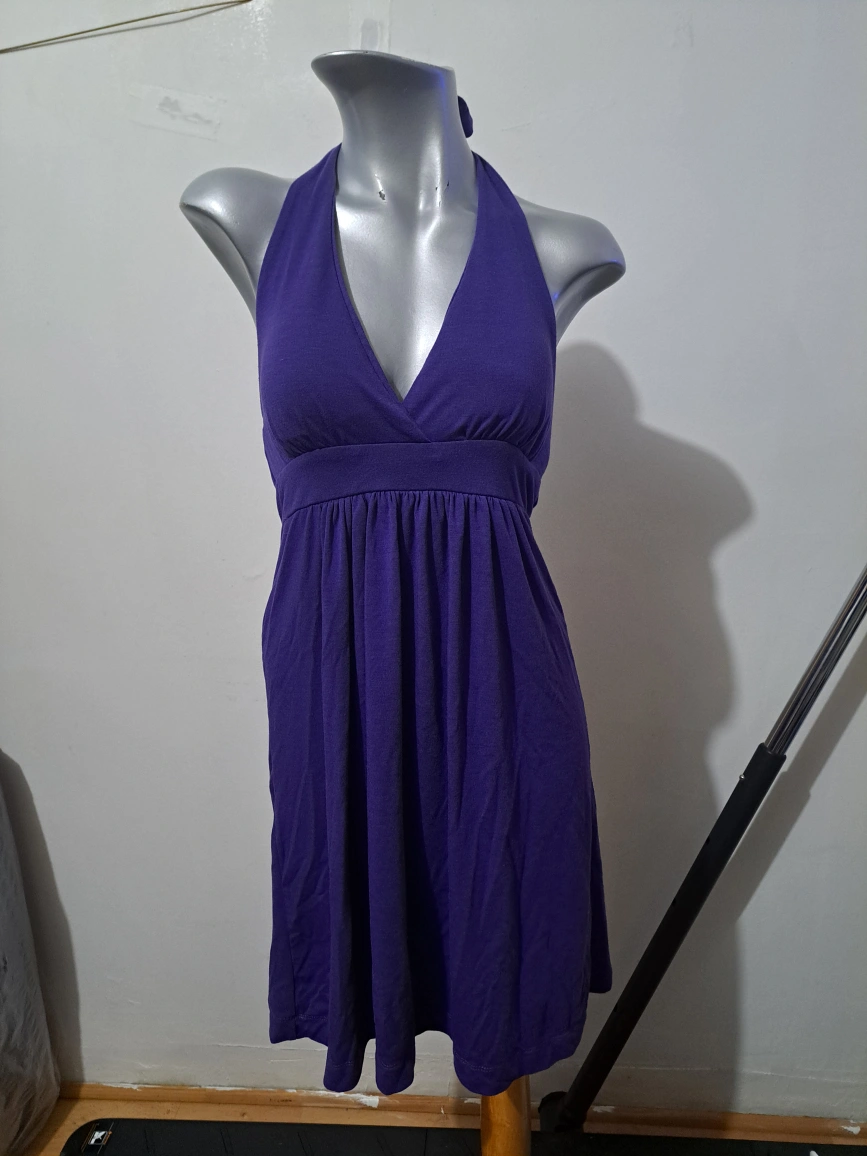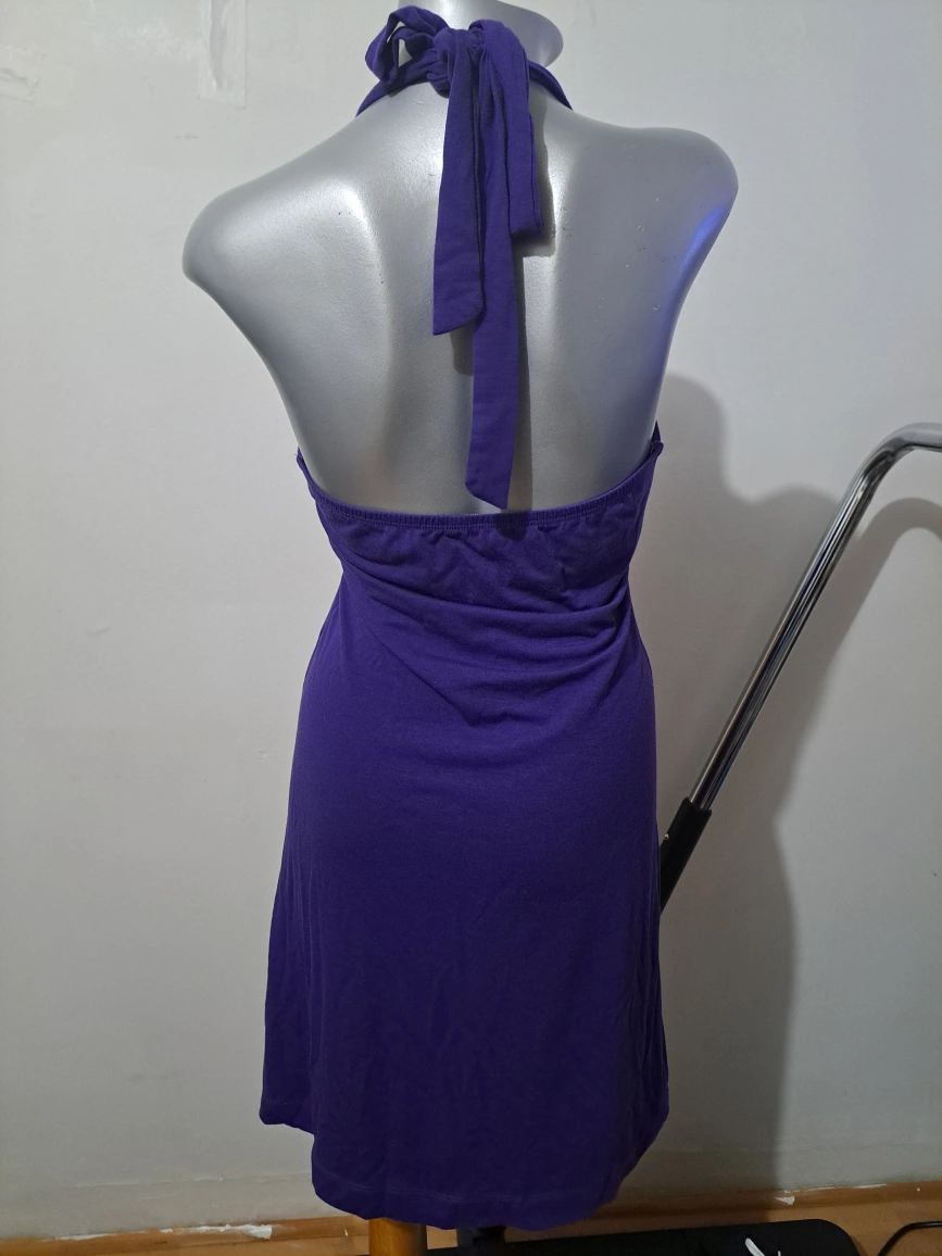 Adorable purple mini dress. Halter neck style. Simple and casual. Perfect for summer.