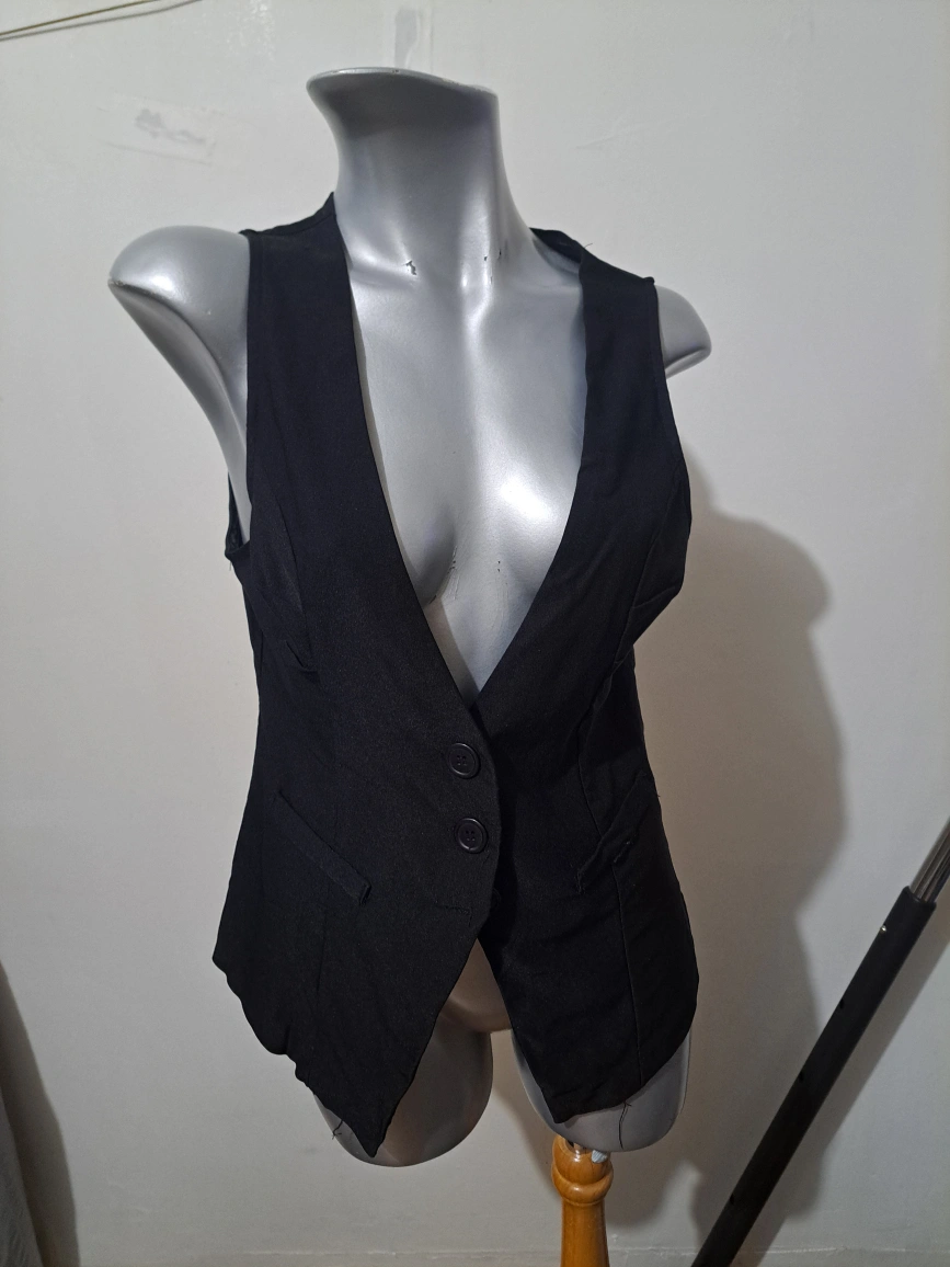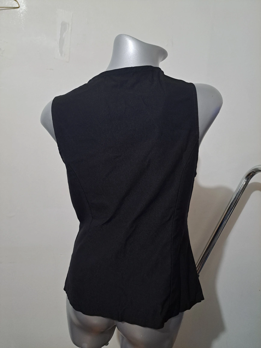 Women's black sleeveless blazer vest. Two button closure. Fake pocket. Size medium.