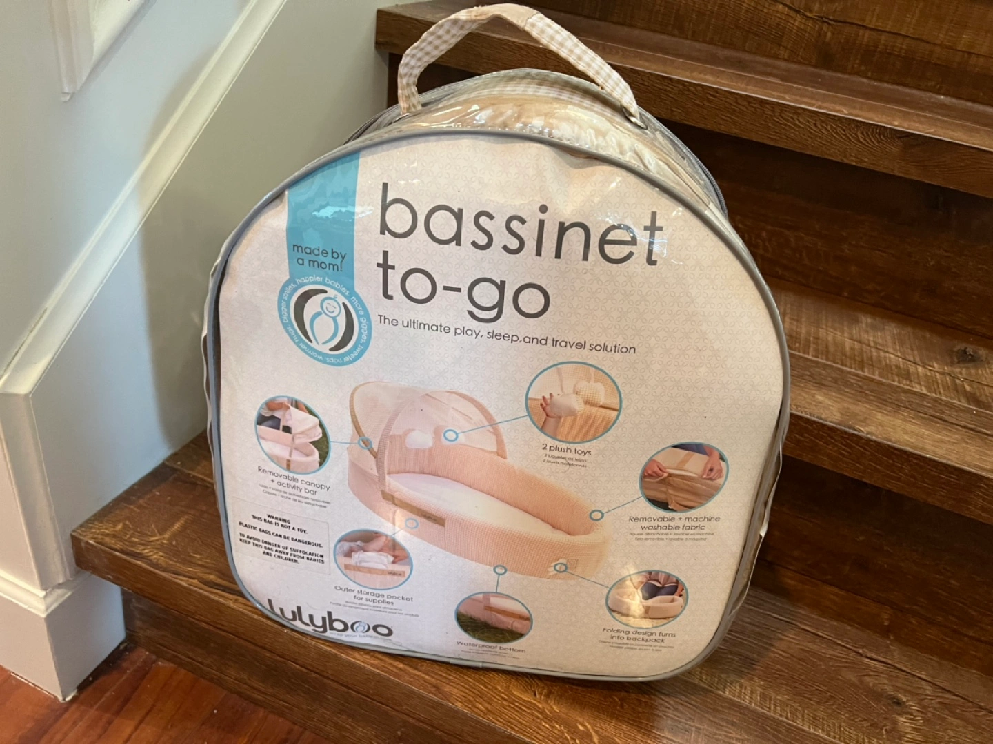 172Portable bassinet ideal for travel. Includes carrying case, two plush toys, and removable, machine-washable liner. Lightweight and easy to store. Perfect for newborns.