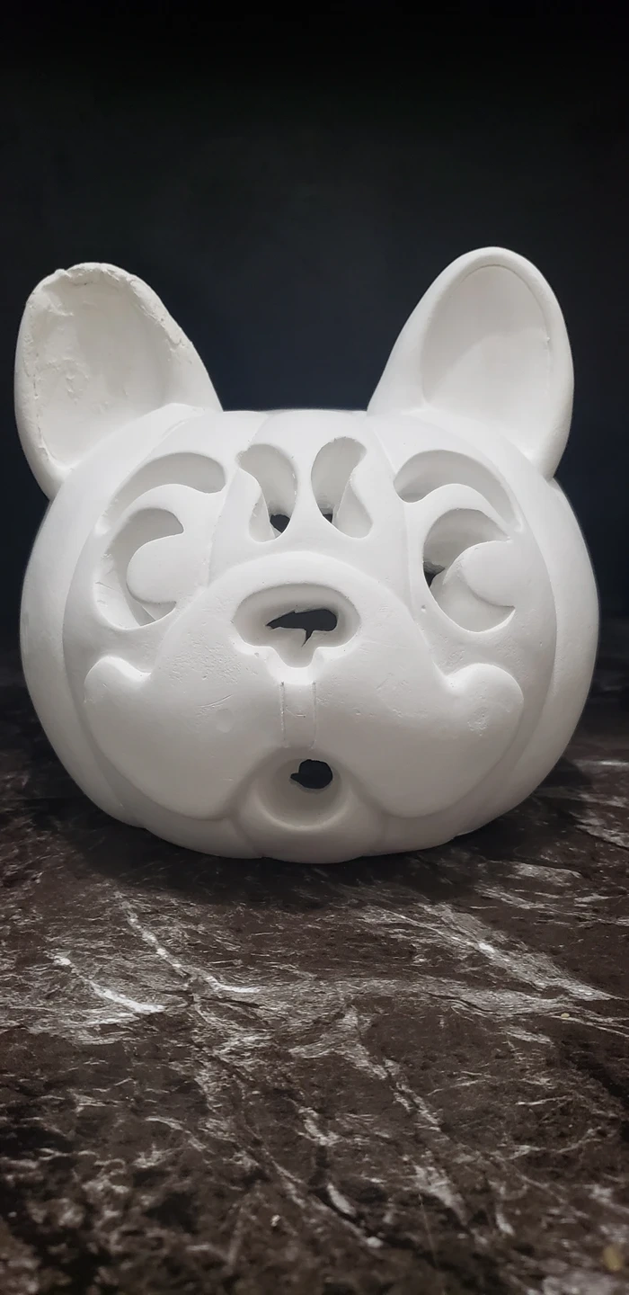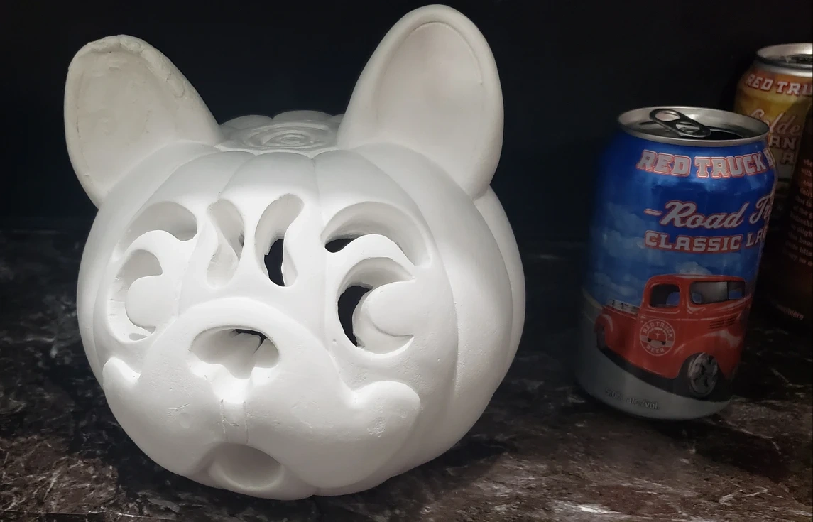 it's a cute pug decoration from Michael's for Halloween. unfortunately this one's ear was smashed so I attempted to fix it but maybe you can do better. you can put a fake candle underneath for added fun. beer can for size reference. Please give him a new home or I'll hide him in a garden ππ€£π€·ββοΈ #freecycle #halloween #pug #dog #diy