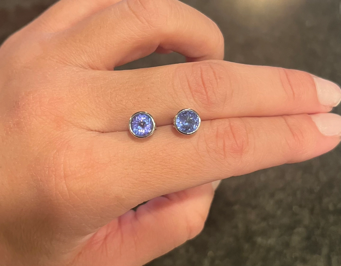 Genuine tanzanite earrings set in white gold. Est. weight of stones is 1 ct each.