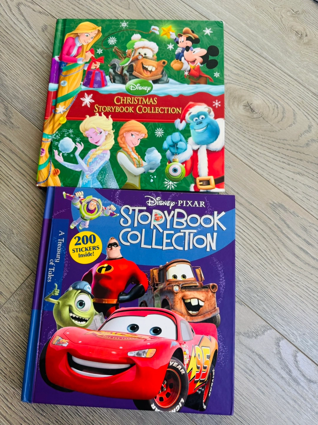 Two Disney Storybook Collections. One features Christmas characters and the other Pixar characters. Includes many popular characters and stories. Great for young readers.