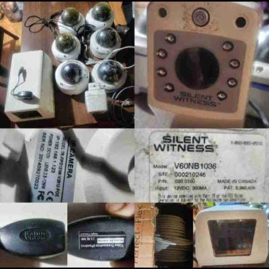 Security camera system includes multiple dome cameras, DVR, power supply, and cabling. Made in Canada. Additional components included.