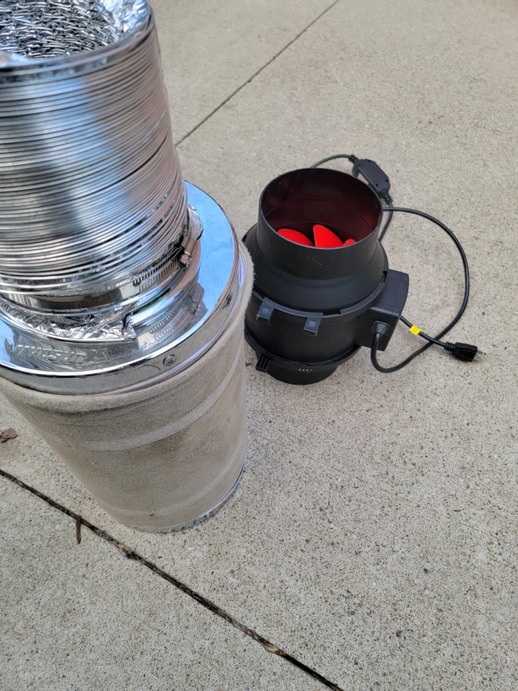 Used duct fan, filter, and flexible ducting. Includes power cord. Good condition. Great for keeping the unwanted smell away from whatever it is you are growing. Just used for 1 grow.