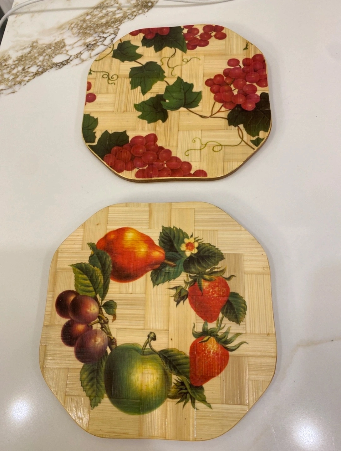 Set of two vintage bamboo trivets. Perfect for adding a touch of vintage charm to your kitchen.