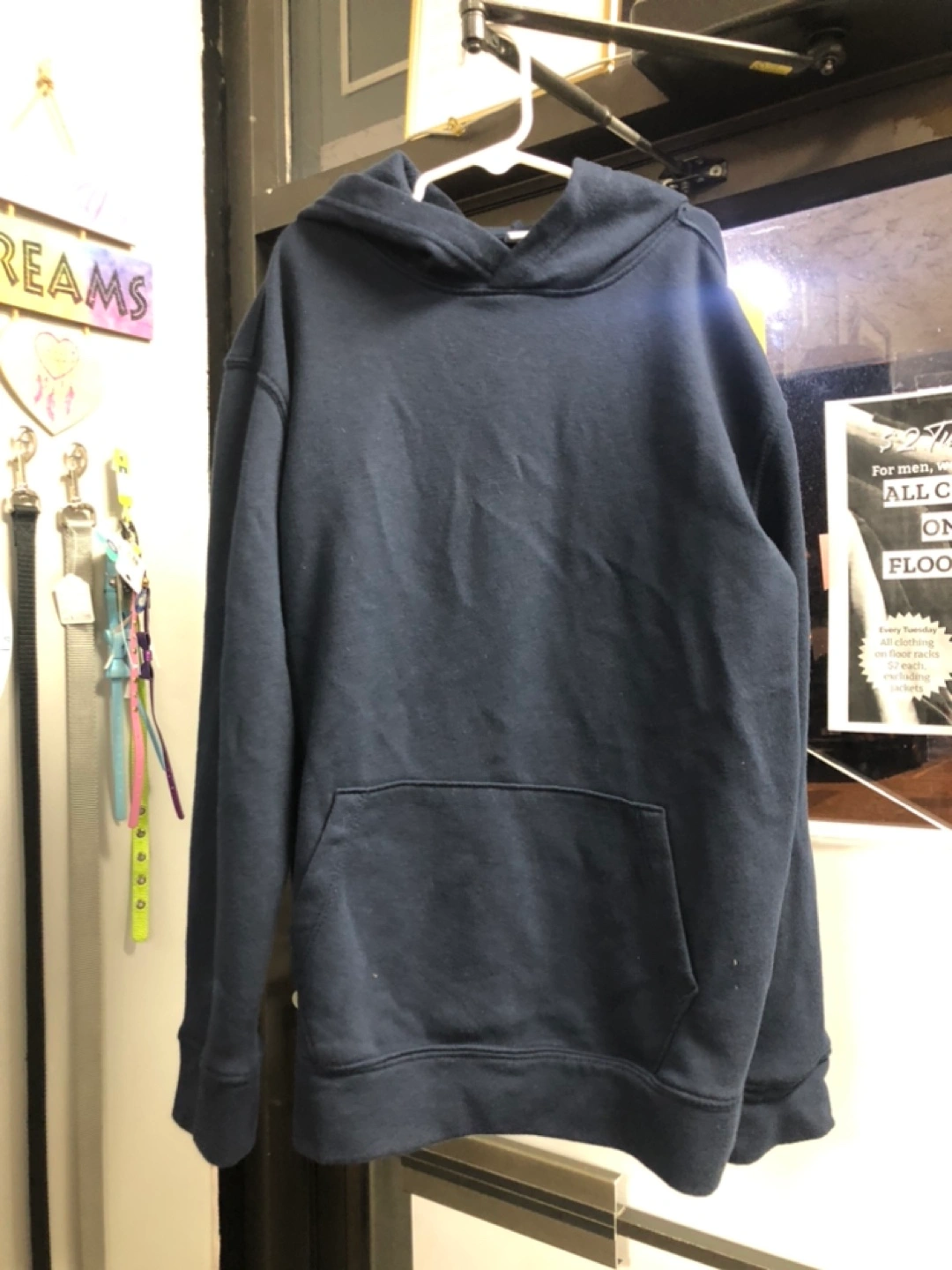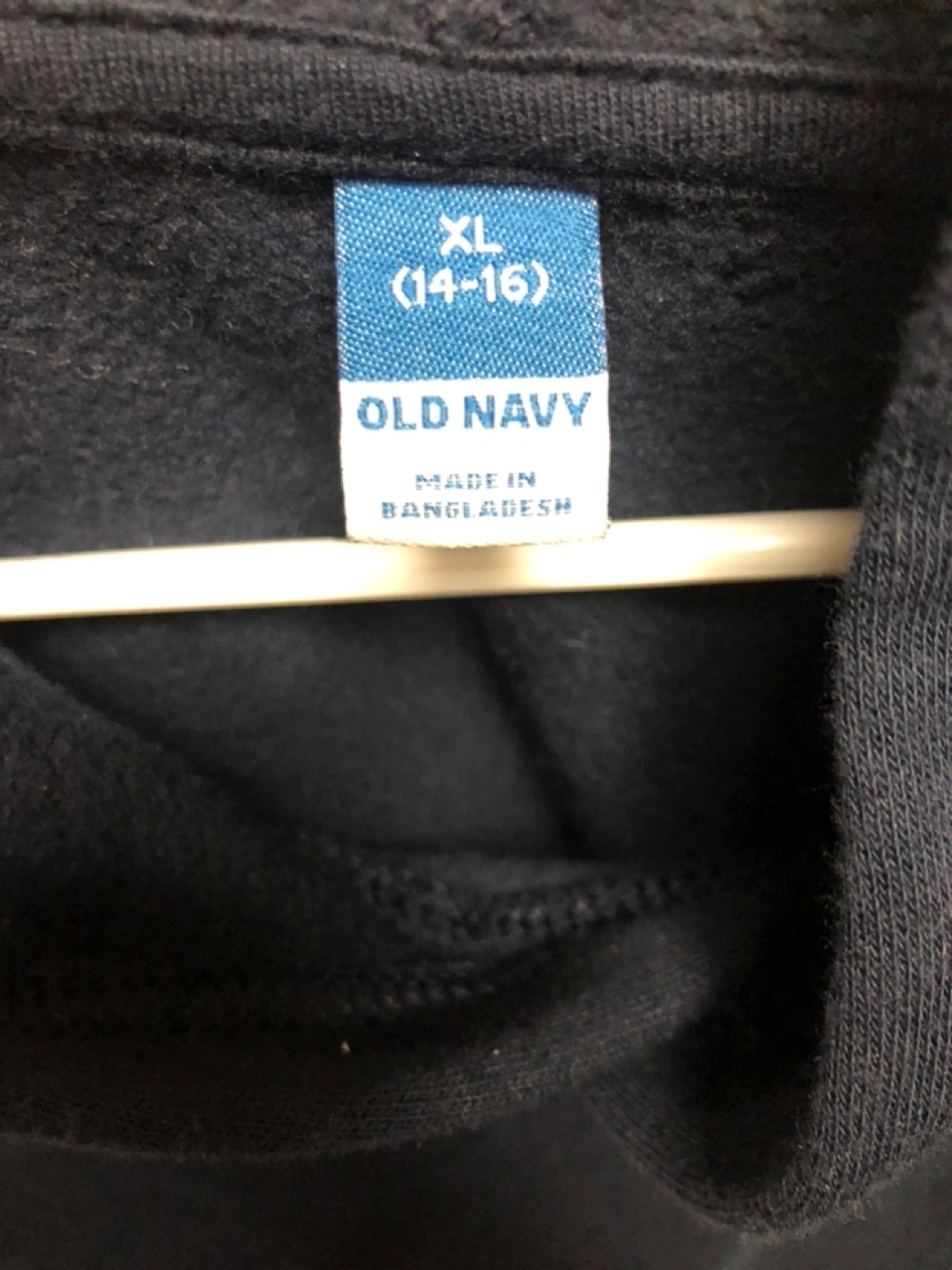 Old Navy hoodie. Size XL (14-16). Navy blue. Long sleeves. Kangaroo pocket. Good condition.