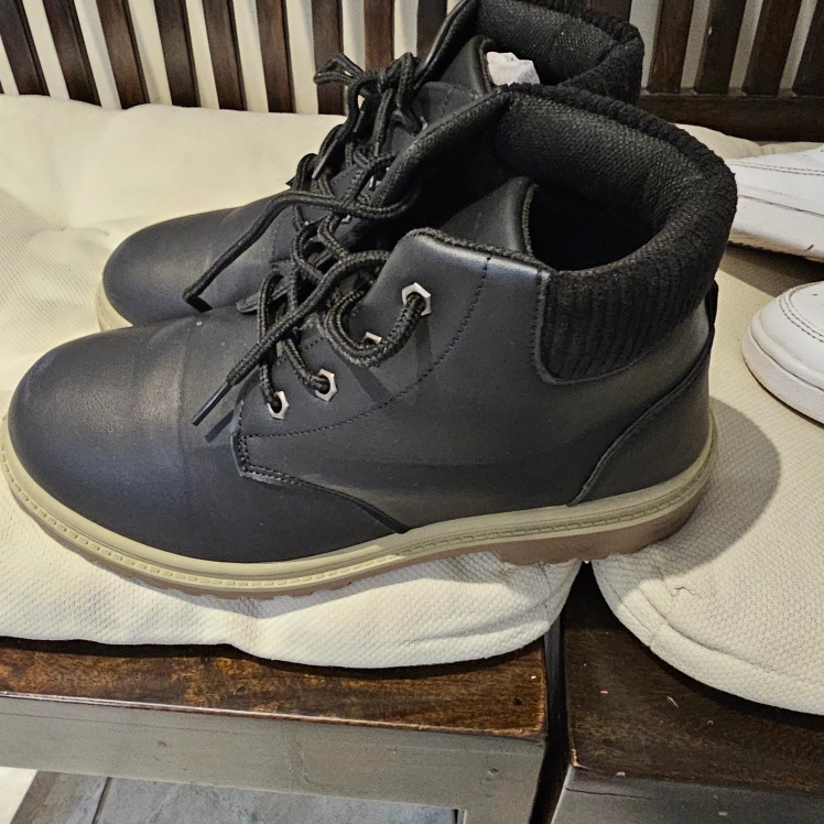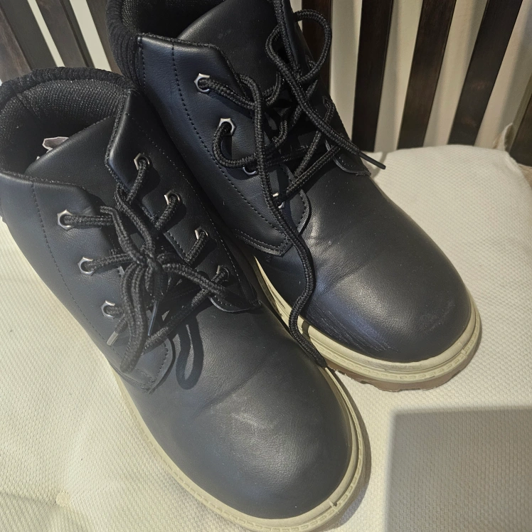 10Pair of black ankle boots. Lace-up closure. Cream coloured sole. Good condition.size 5 US. like new used for one time only