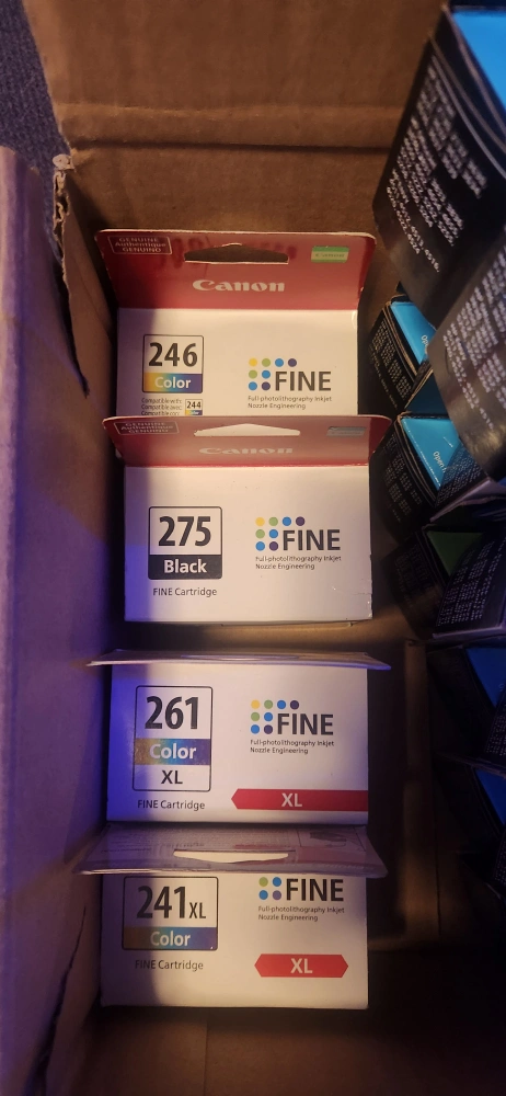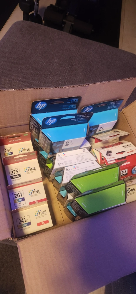 Various HP and Canon ink cartridges. Mix of colours and sizes. Good for home or office use. Bulk purchase, great value!