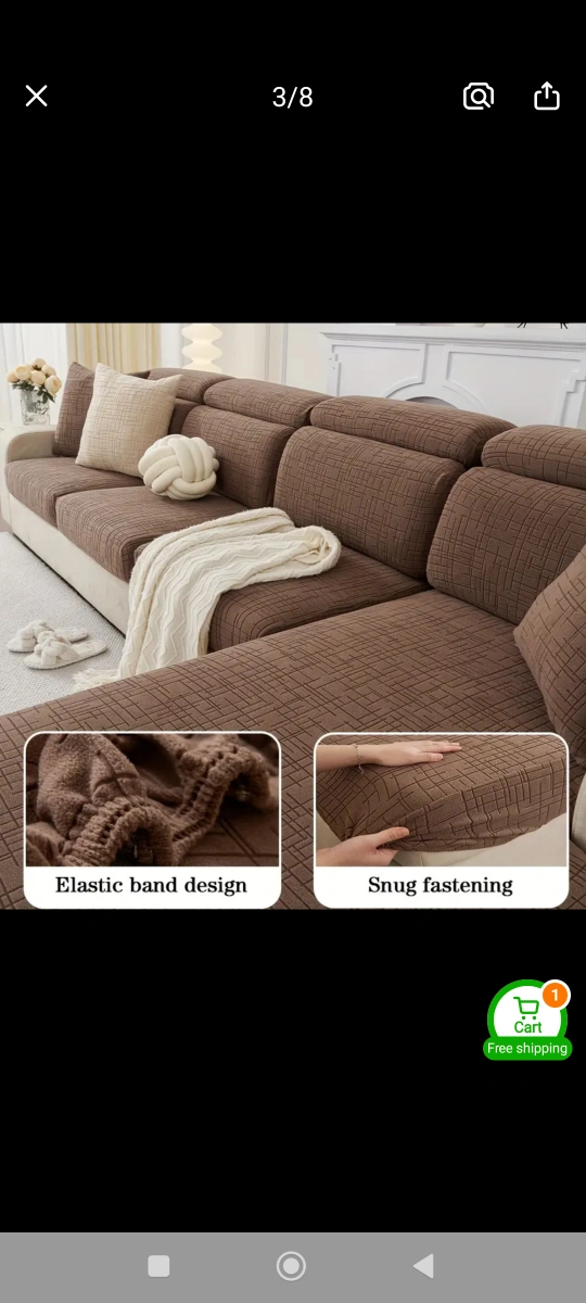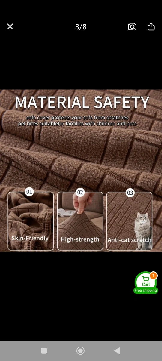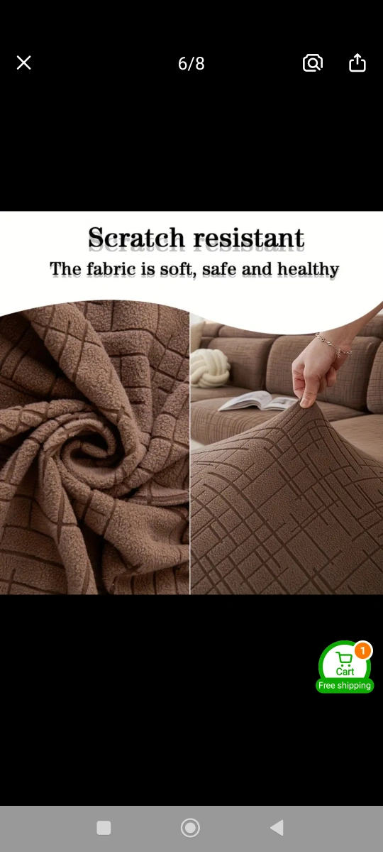 Durable sofa cover. Soft, safe, and healthy fabric. Scratch-resistant. Protects against pet damage. Elastic band design for a snug fit. Available in dark grey and brown. Suitable for families with children and pets.