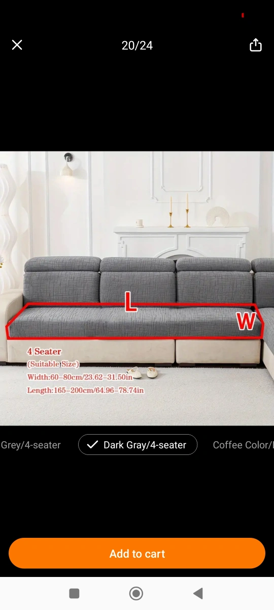 4-seater Sofa Cover - Dark Grey