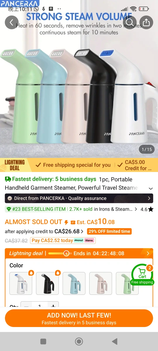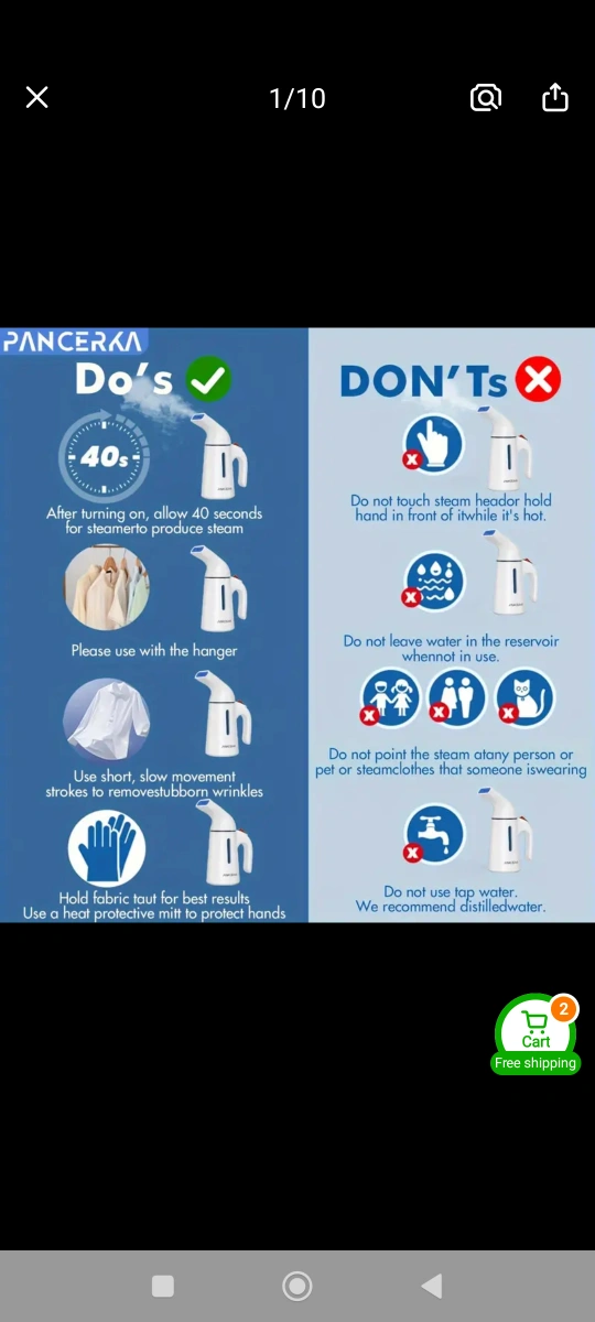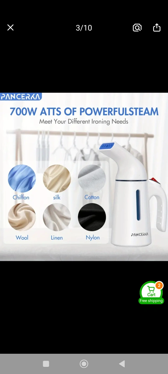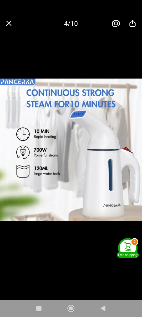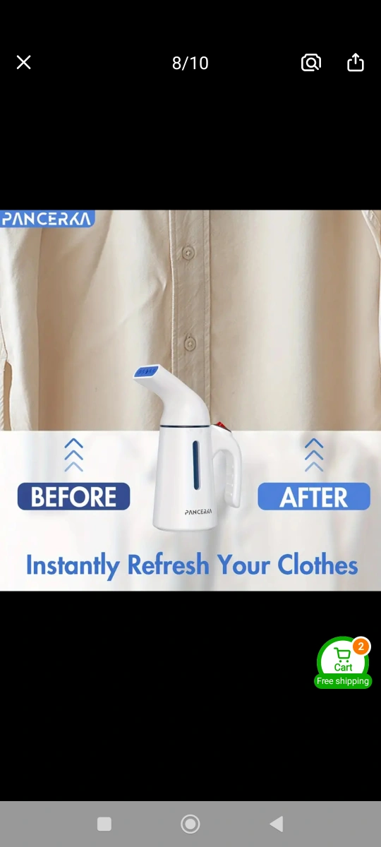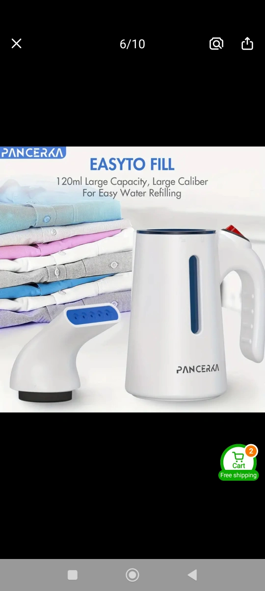 Portable garment steamer. 120ml large capacity. Easy water refilling. Powerful steam. Removes wrinkles quickly. Great for clothes, curtains, and more.