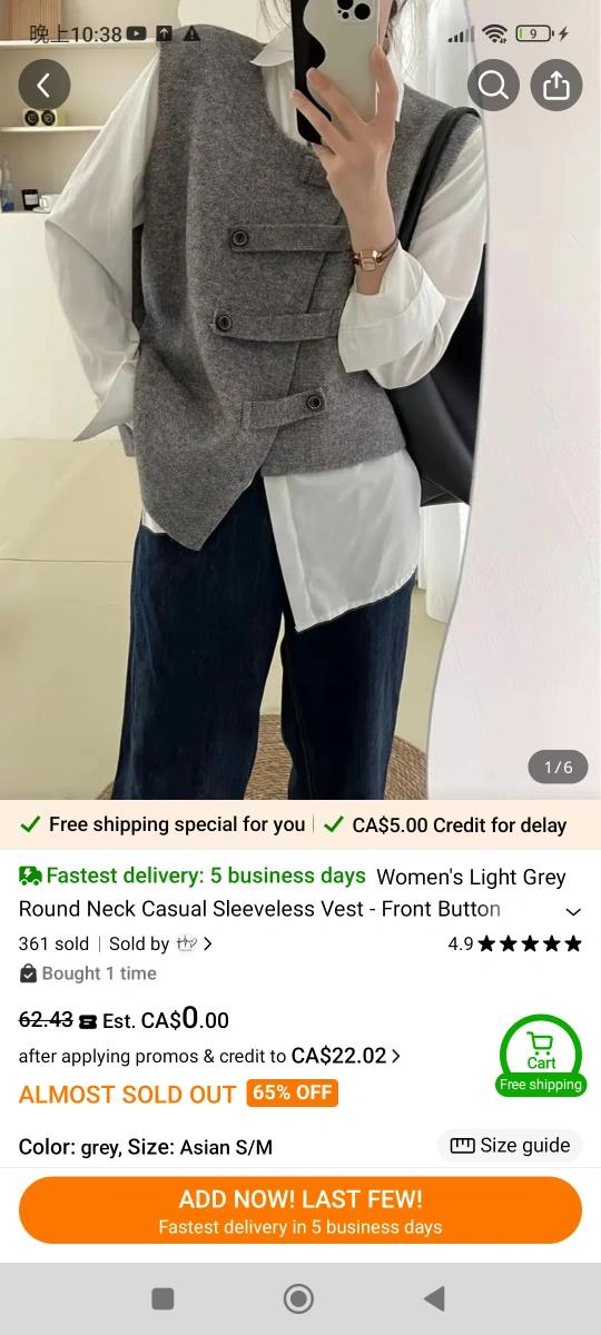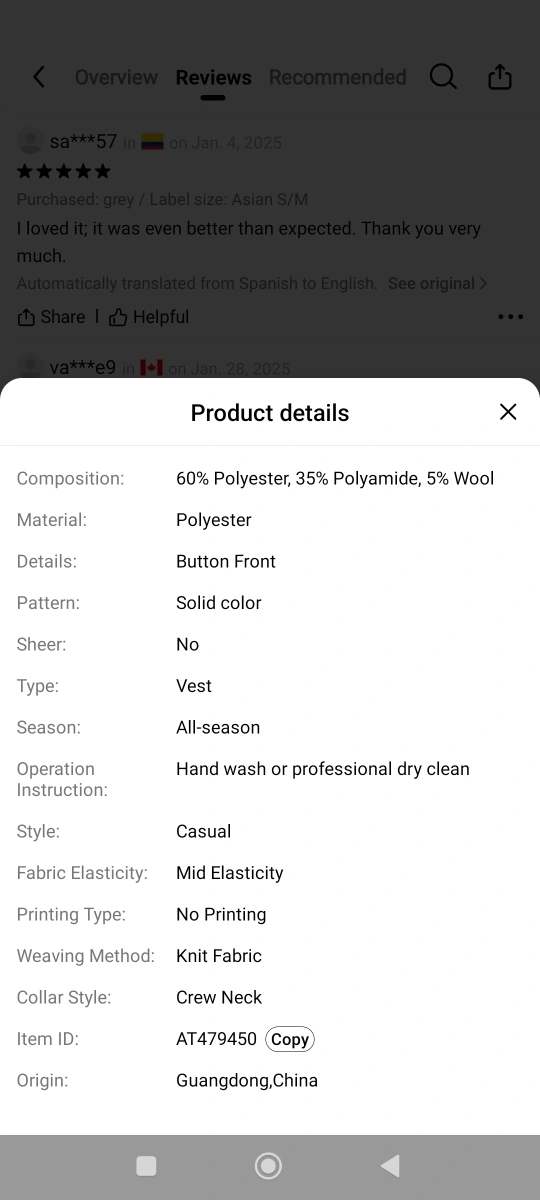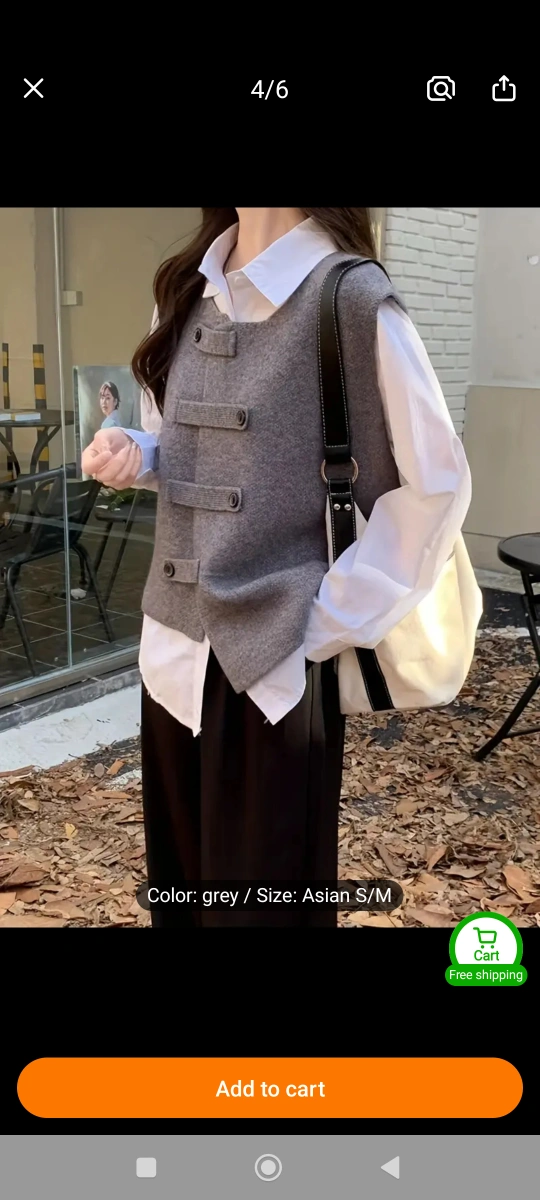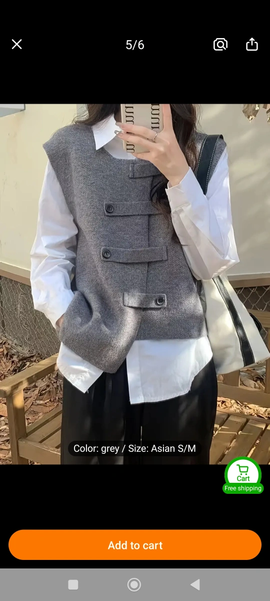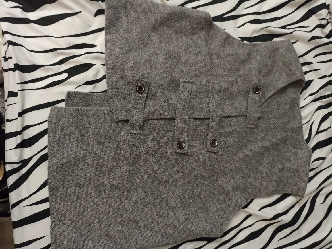 Grey sleeveless vest. Round neck. Button front. Casual style. Asian size S/M. 60% Polyester, 35% Polyamide, 5% Wool. 100% New