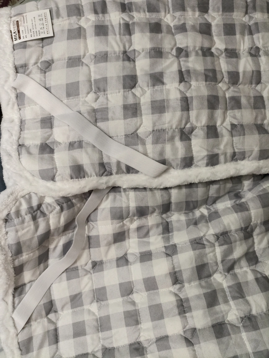 Luxurious soft velvet mattress protector. Hypoallergenic and breathable. Machine washable. Features a quilted design with grey and white pattern. Includes elastic straps for secure fit. Perfect for protecting your mattress and adding comfort.