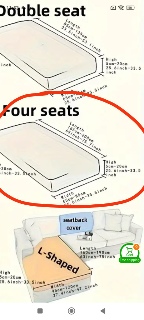 - Dimensionsw 65-85cm ( L 165-200 cm) four seats
