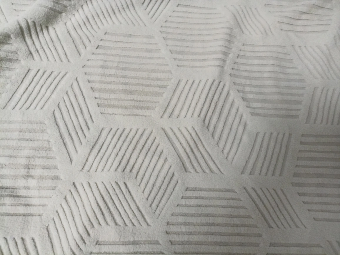 Four-seater sofa cover. Beige colour. Stretch fabric. Geometric pattern.