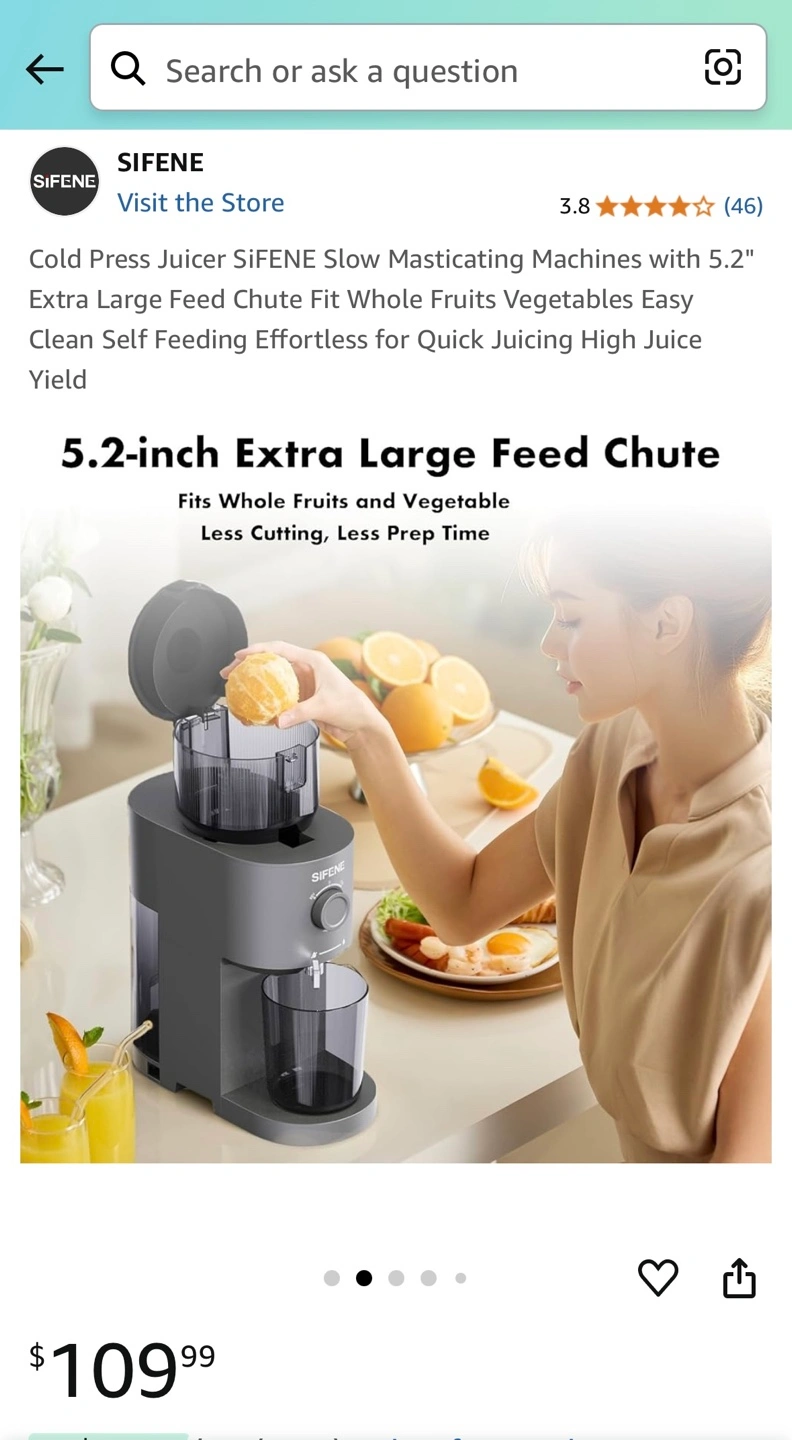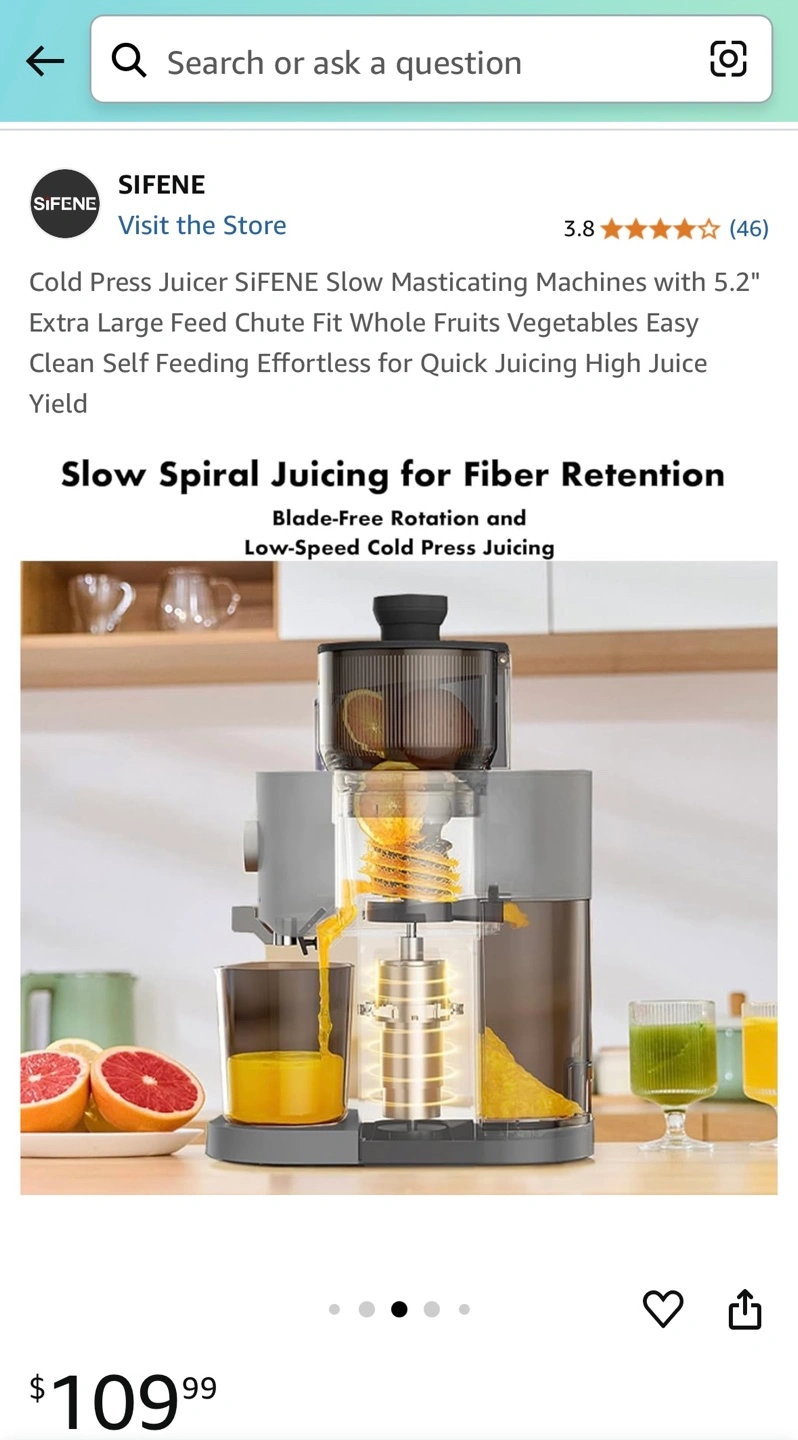 5.2-Inch Extra-Wide Feed Chute for Whole Fruits and Vegetables — Equipped with a 5.2-inch wide feed chute, you can juice whole fruits and vegetables without pre-cutting. This greatly reduces prep time and ensures a high juice yield, making your juicing process faster and more efficient