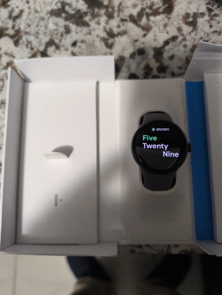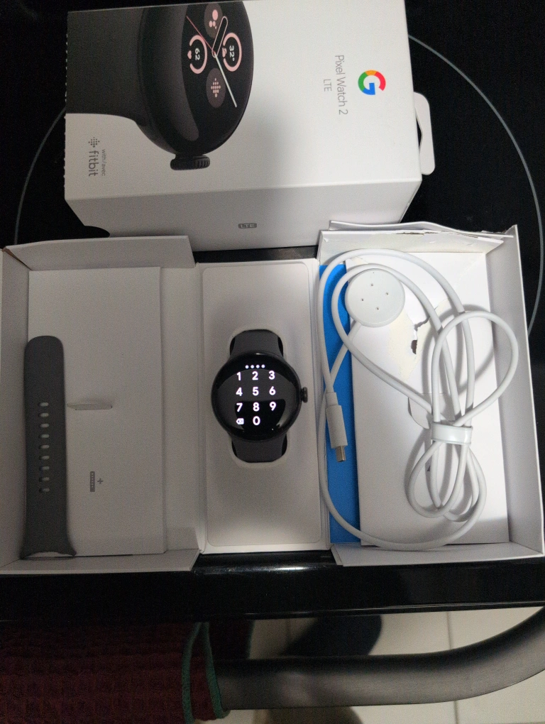 Google Pixel Watch 2 LTE smartwatch. Grey band. Android version 15. Includes charger and box. Worn a handful of times. Box slightly damaged in my cabinet.