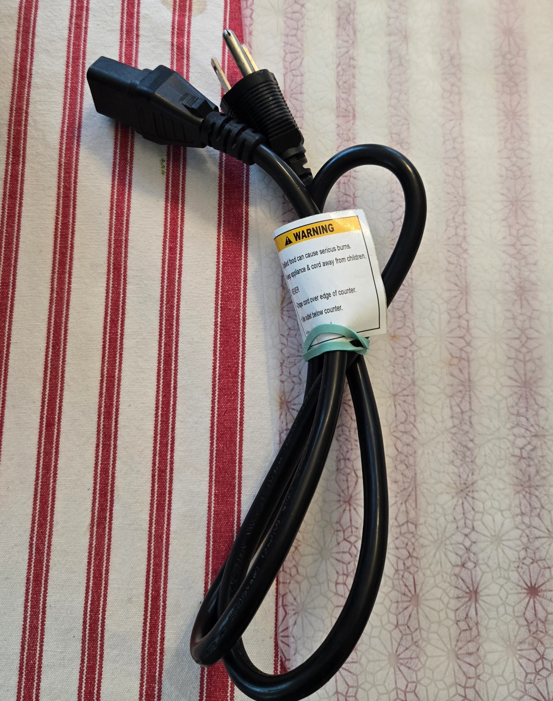 70Stainless steel finish. Includes power cord. Used, but in good condition. Six-quart capacity.