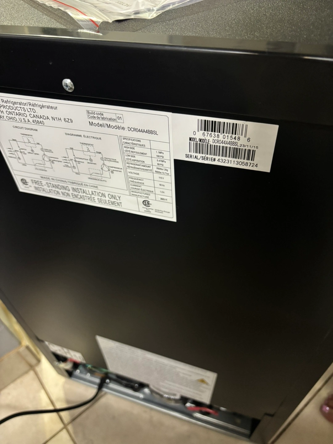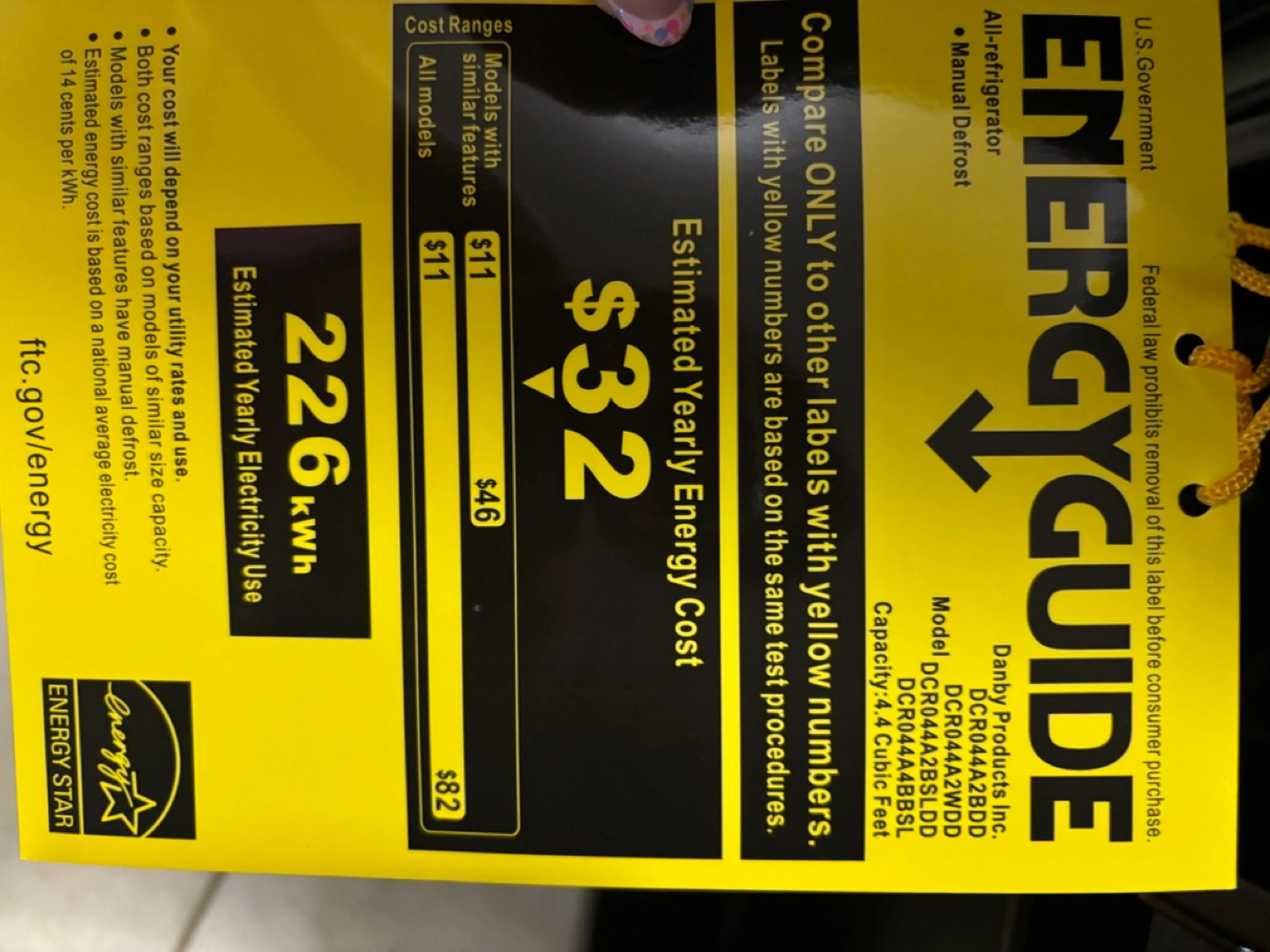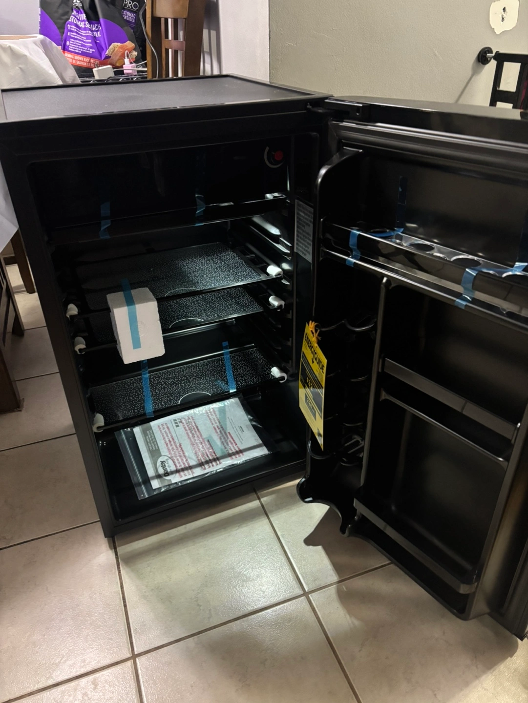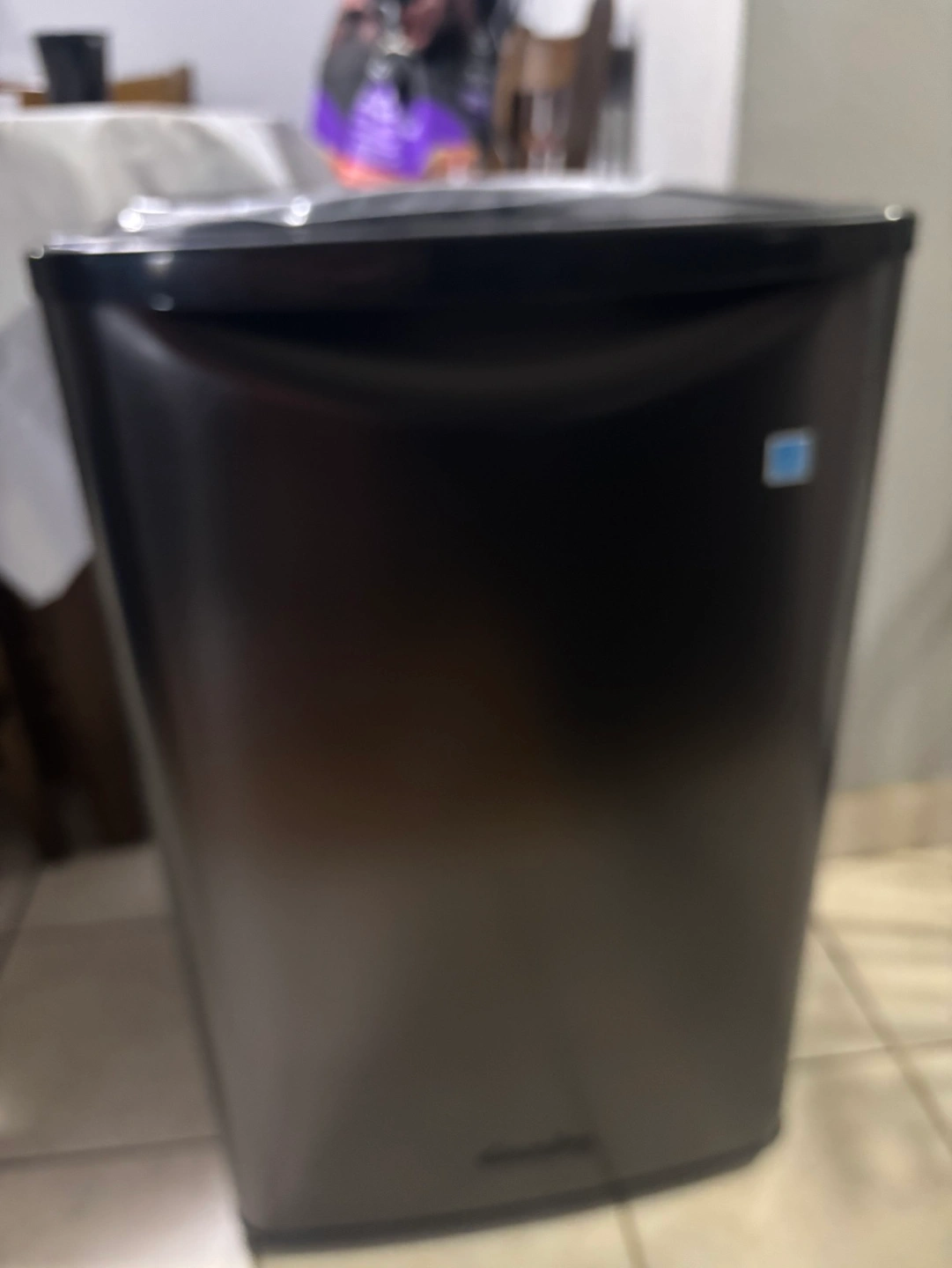 New Danby compact refrigerator. Black. 4.4 cubic feet. Energy efficient. Manual defrost. Includes shelves and manual.