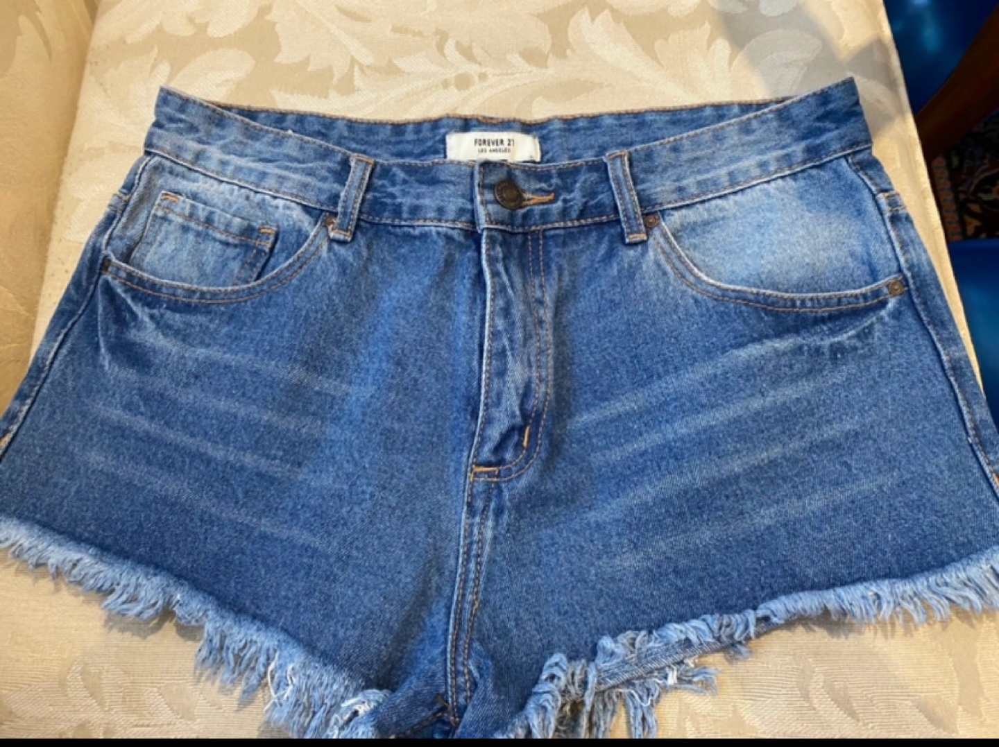 Women’s Frayed denim shorts by Forever 21. Size 30. Classic blue wash. Five-pocket styling. Excellent condition.