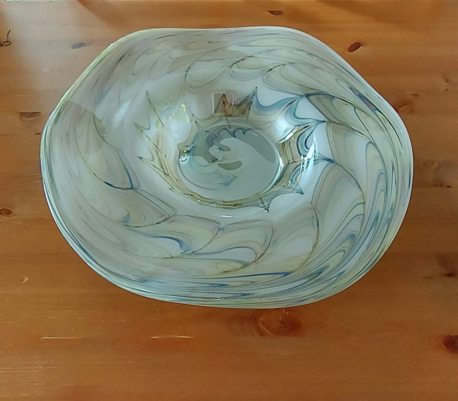 Large Decorative Glass Bowl, Swirled Design