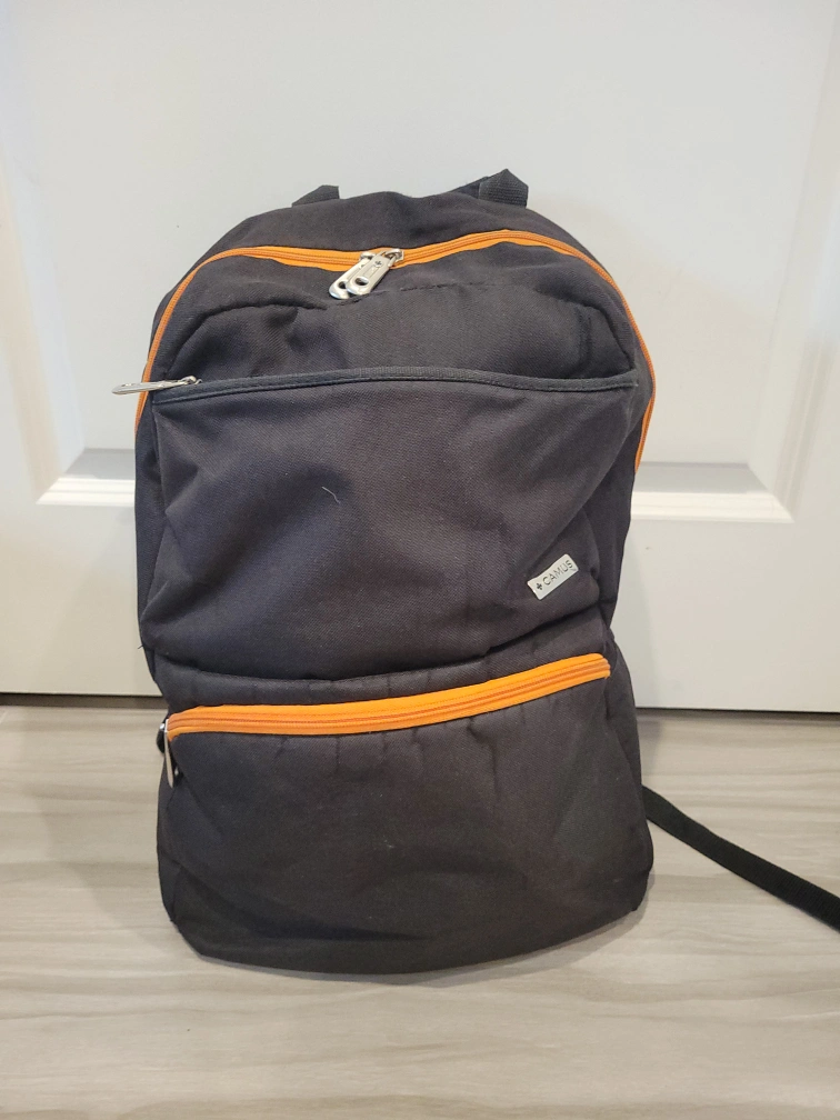Camus Brand Black Backpack with Orange Outline Knapsack