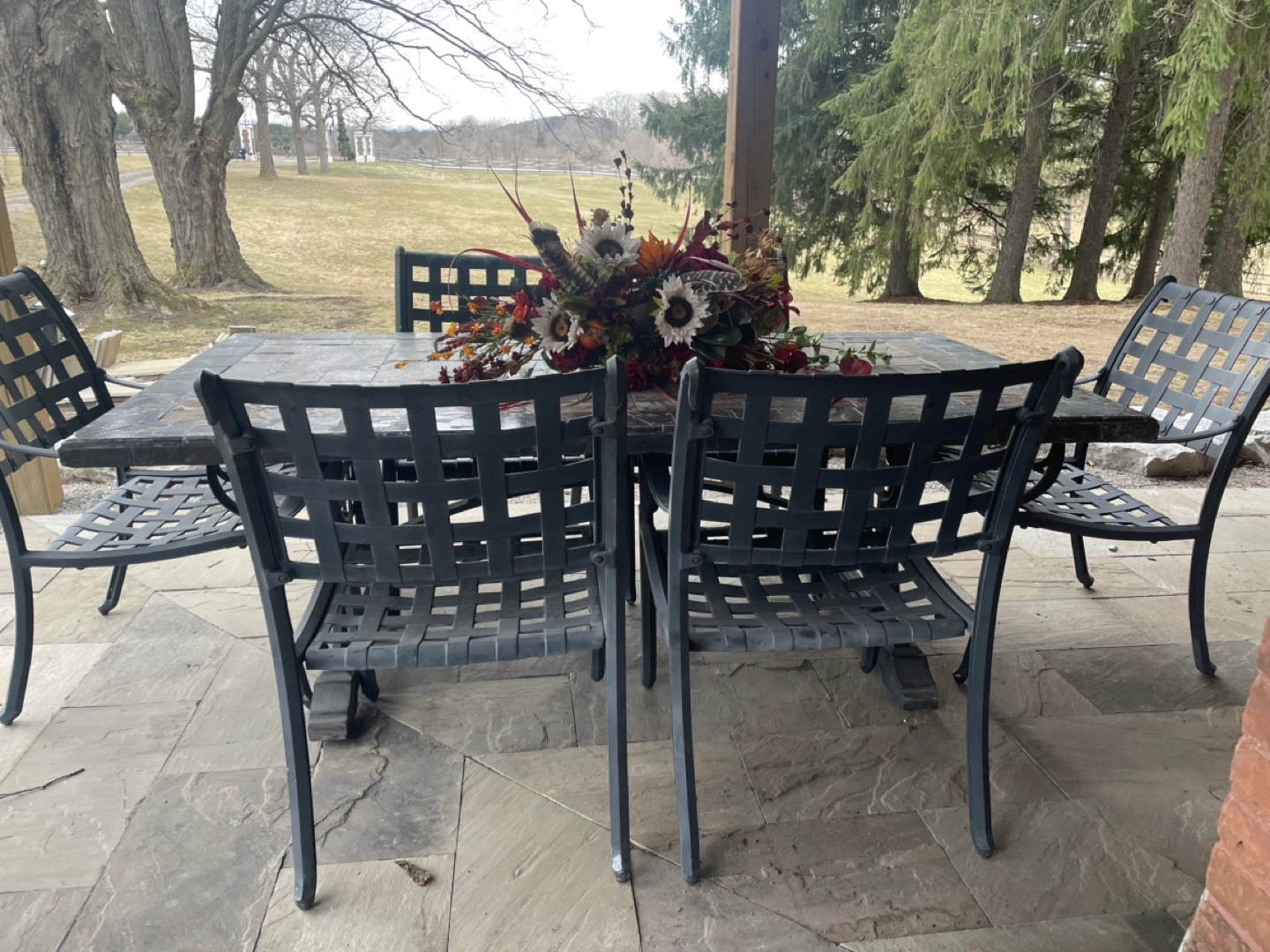- DimensionsTable: 43” x 80” x 29” high chairs: 23” wide