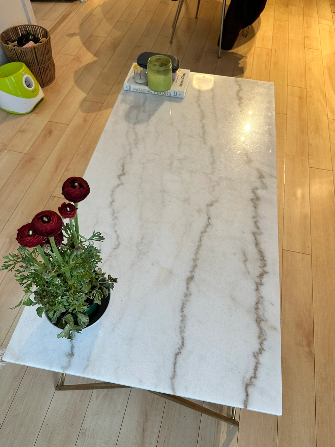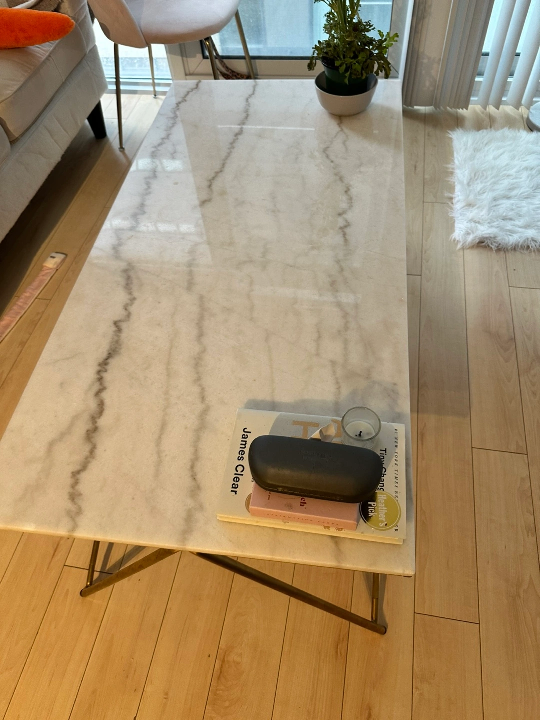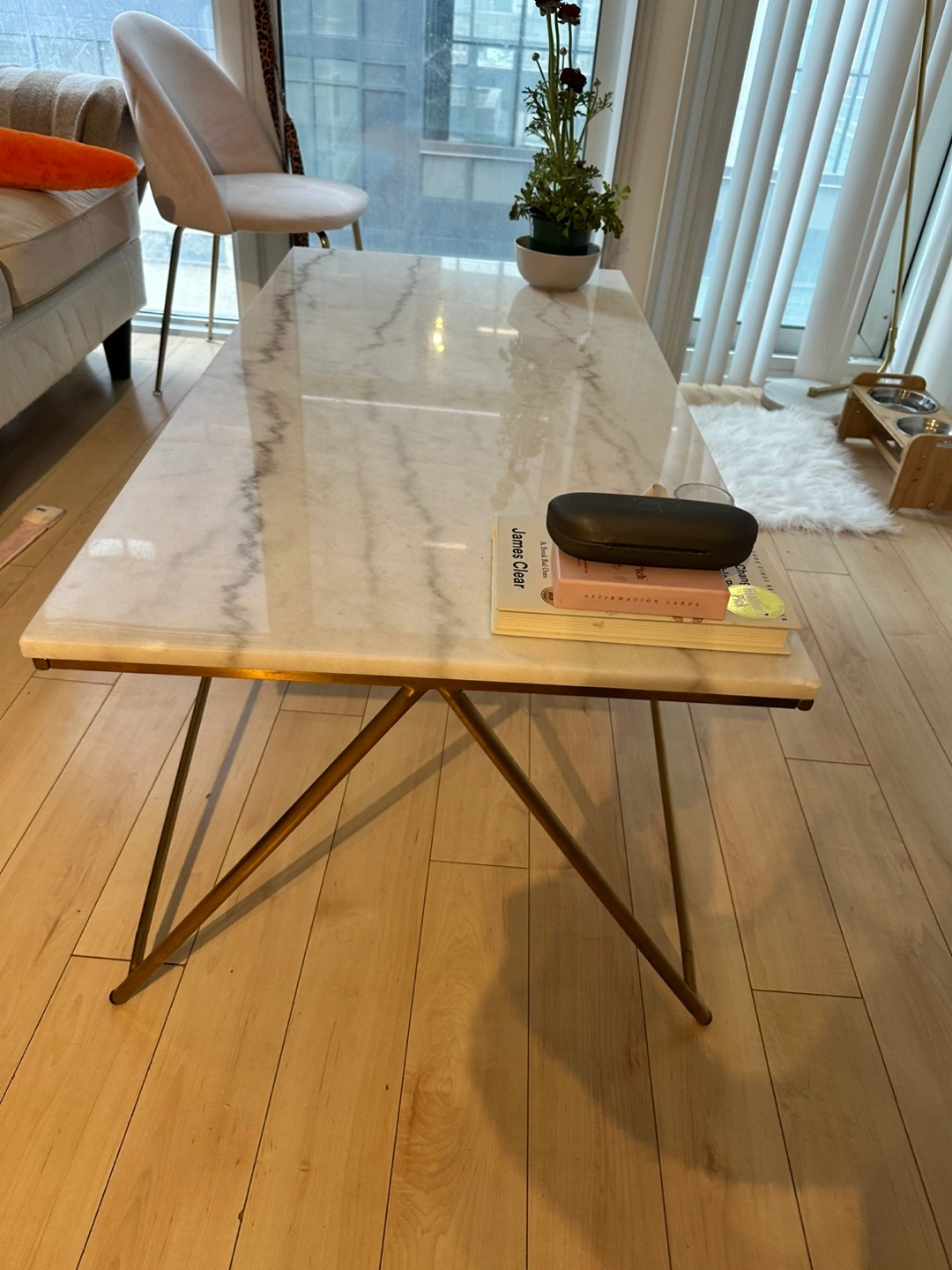 PRODUCT DIMENSIONS Width: 120 cm (47") Height: 45.72 cm (18") Depth: 60 cm (24") The chic combination of the golden base and marble surface of the Etta coffee table gives it showpiece status. Whether you’re looking for a timeless piece or are more on board with the latest trends, you can’t go wrong by adding a piece from the Etta collection to your space. FEATURES 15mm marble tabletop Stainless steel legs Golden finish